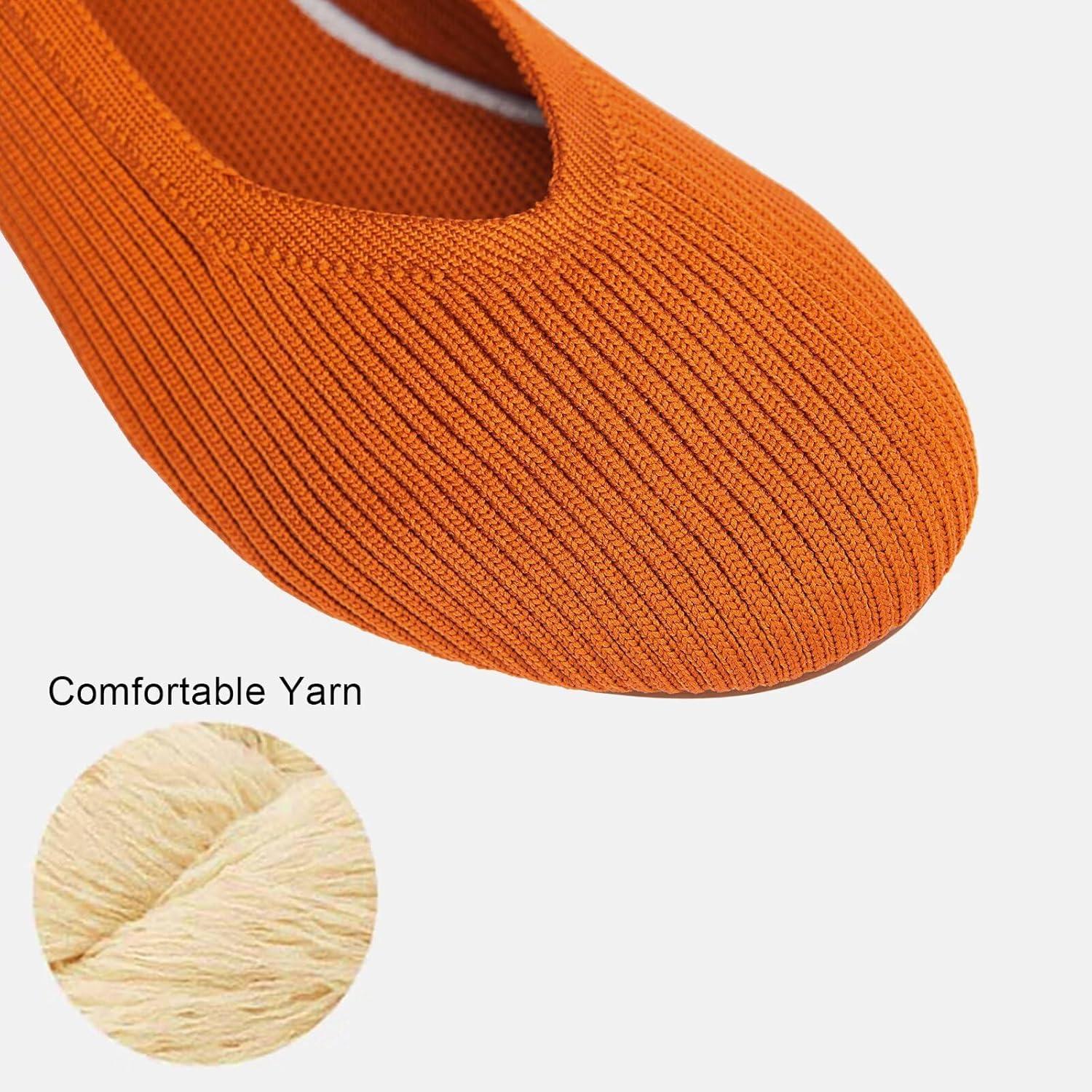 Frank Mully Women’s Ballet Flats Round Toe Walking Flats Slip On Work Shoes Knitted Flats Shoes for Woman Soft Lightweight(Orange)