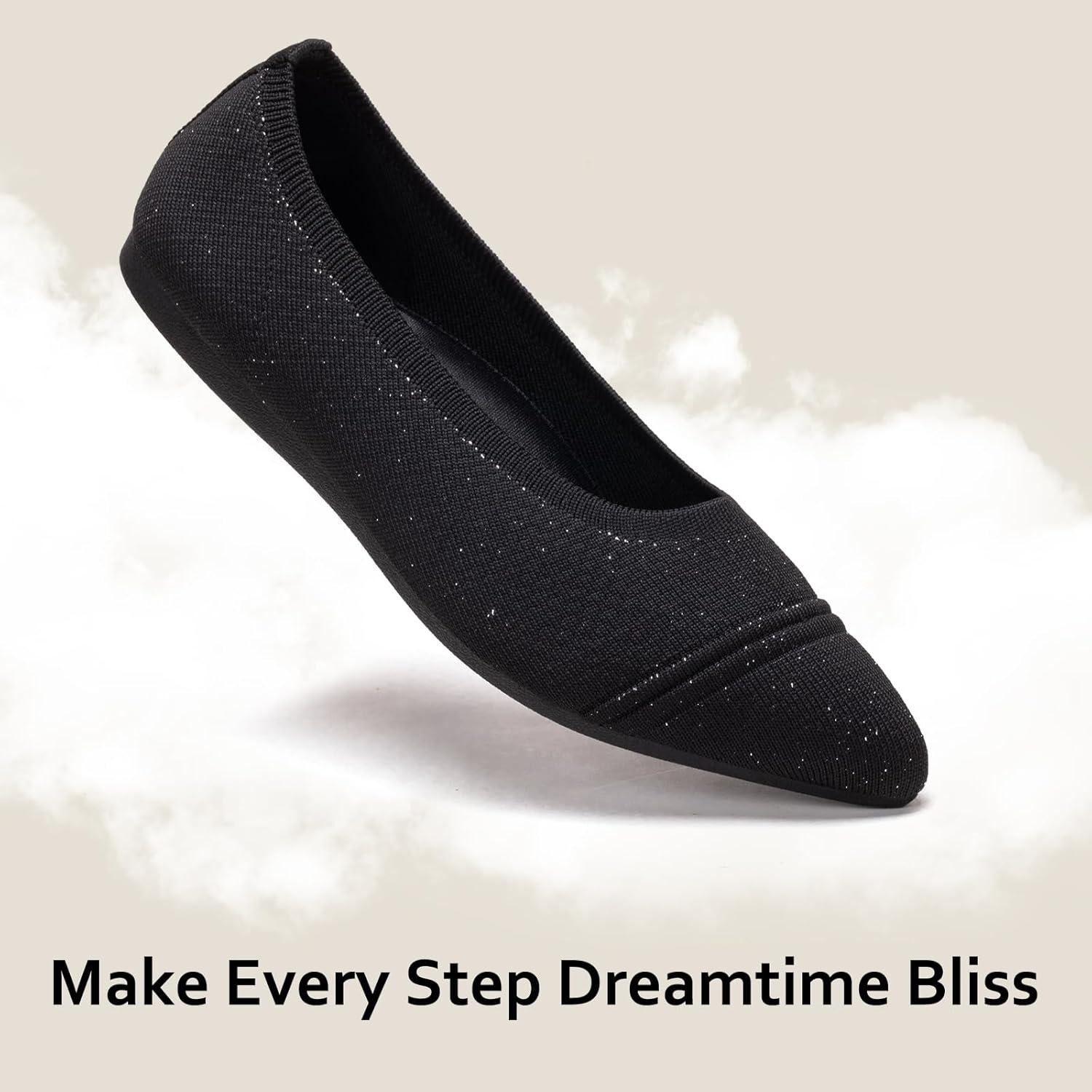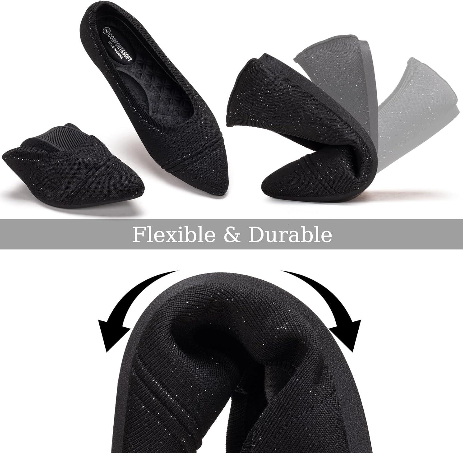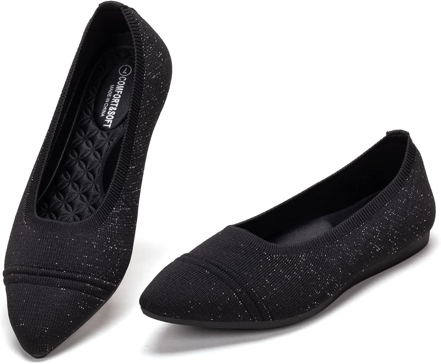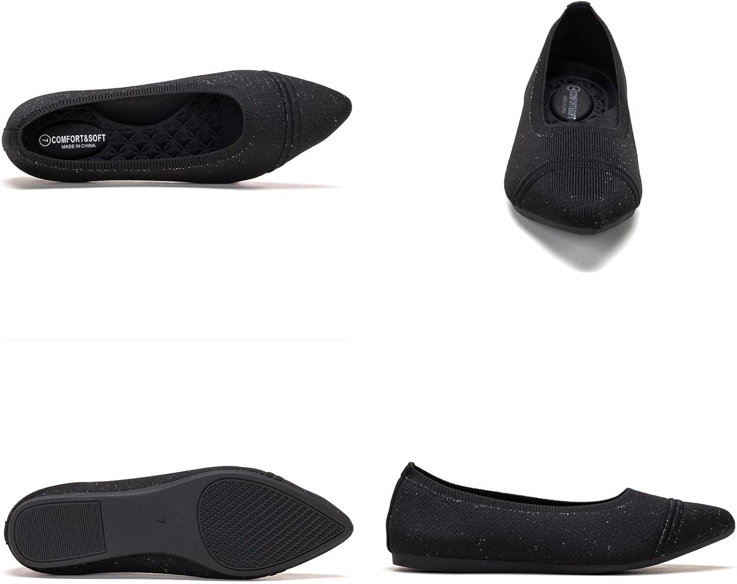 Frank Mully Women’s Flats Pointed Toe Knit Flats Lightweight Slip On Breathable Comfort Walking Shoes with Arch Support Soft Flexible Sole for Work Travel(Eblack)