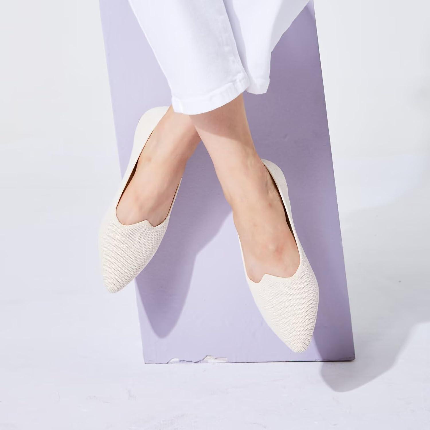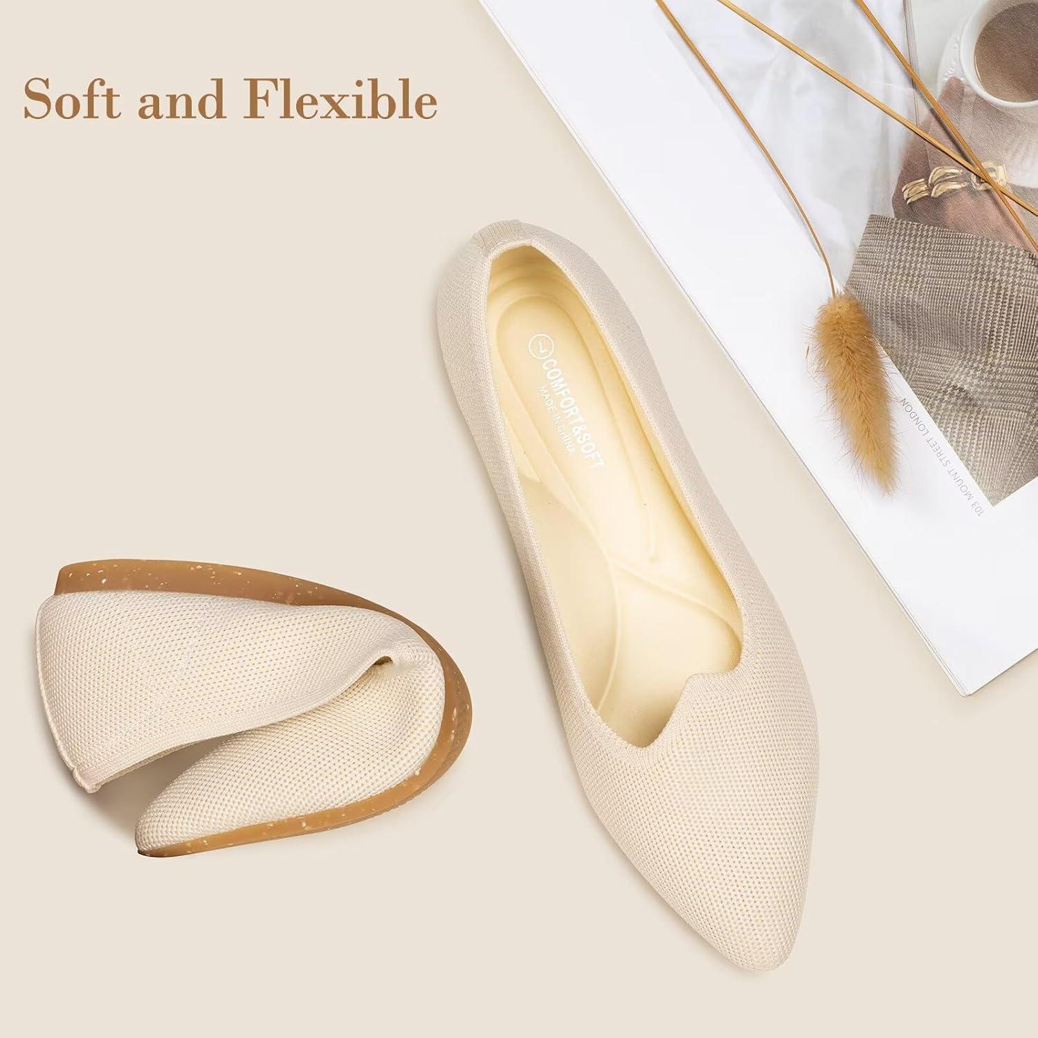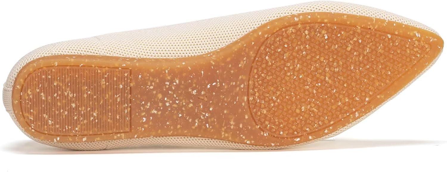 Frank Mully Women’s Flats Pointed Toe Knit Flats Lightweight Slip On Breathable Comfort Walking Shoes with Arch Support Soft Flexible Sole for Work Travel(Beige)