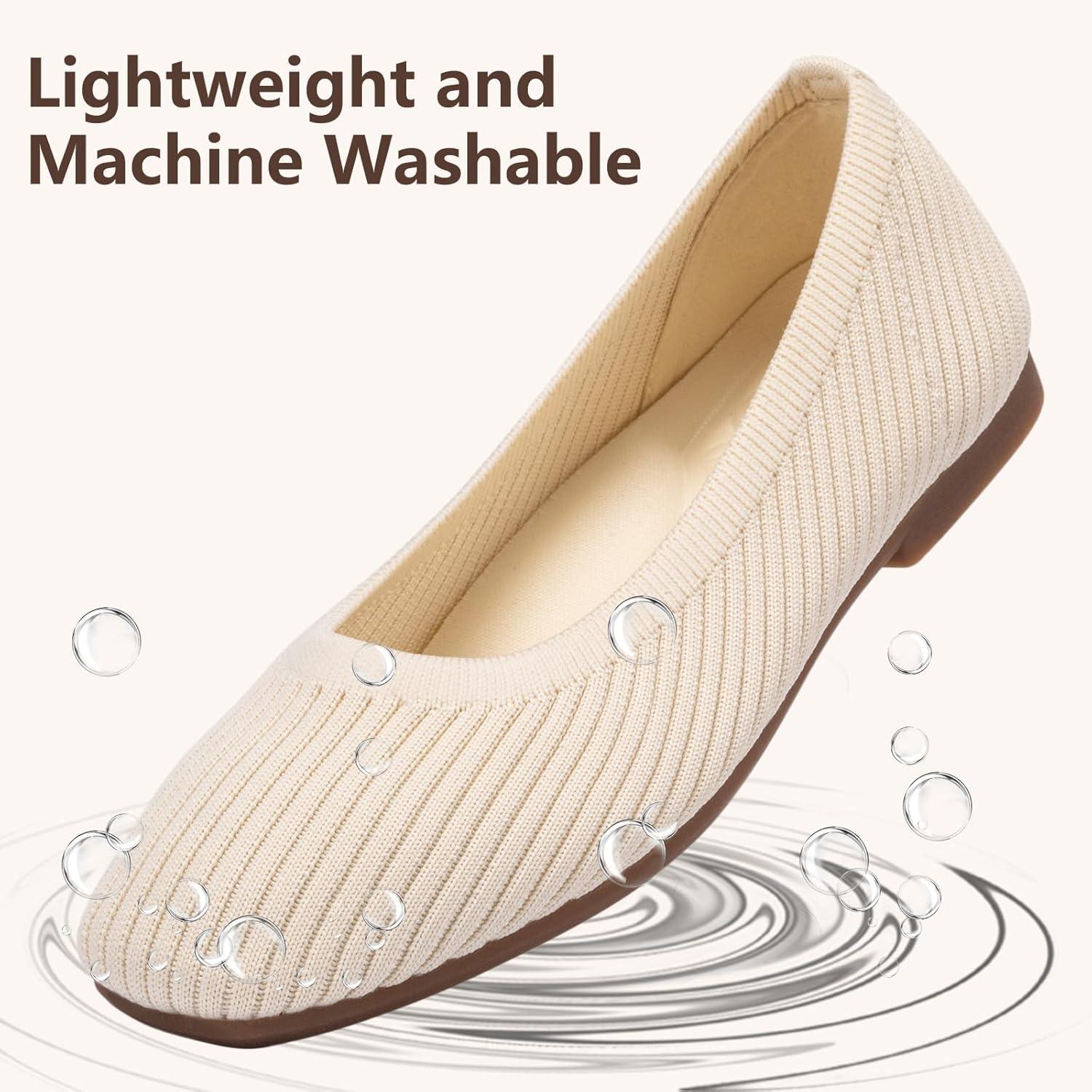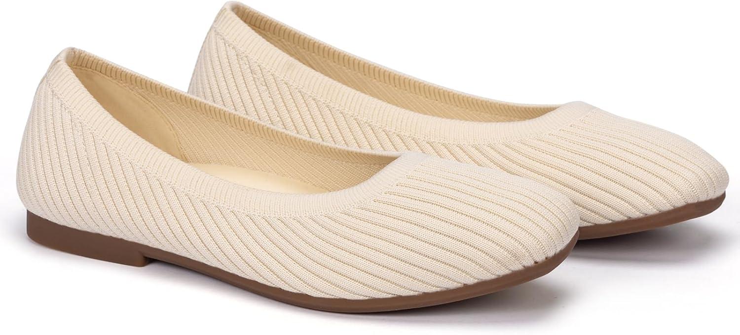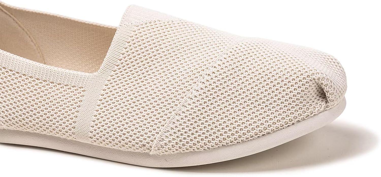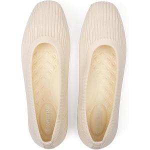 Frank Mully Women’s Knitted Square Toe Flats Comfortable Loafer Shoes Office Work Shoes Lightweight(Cream)