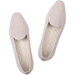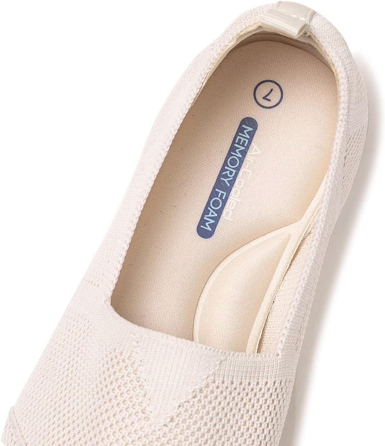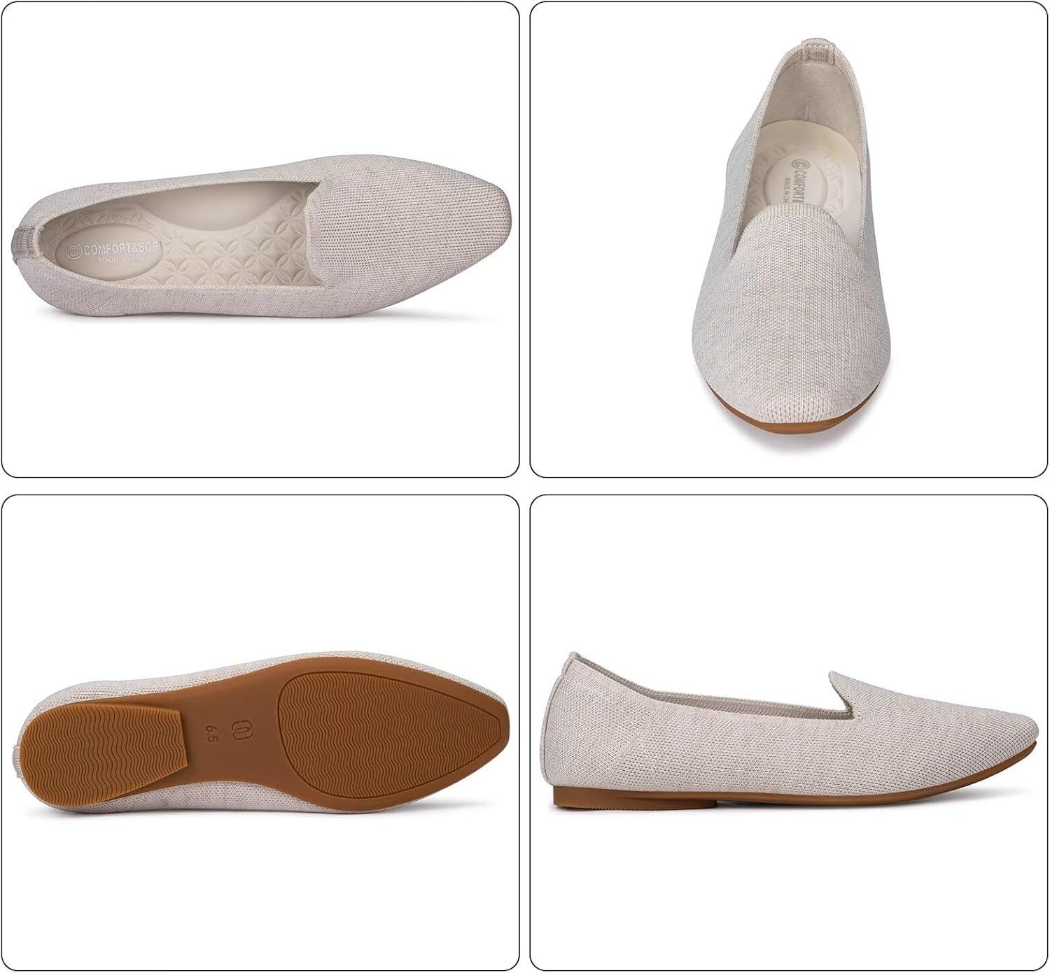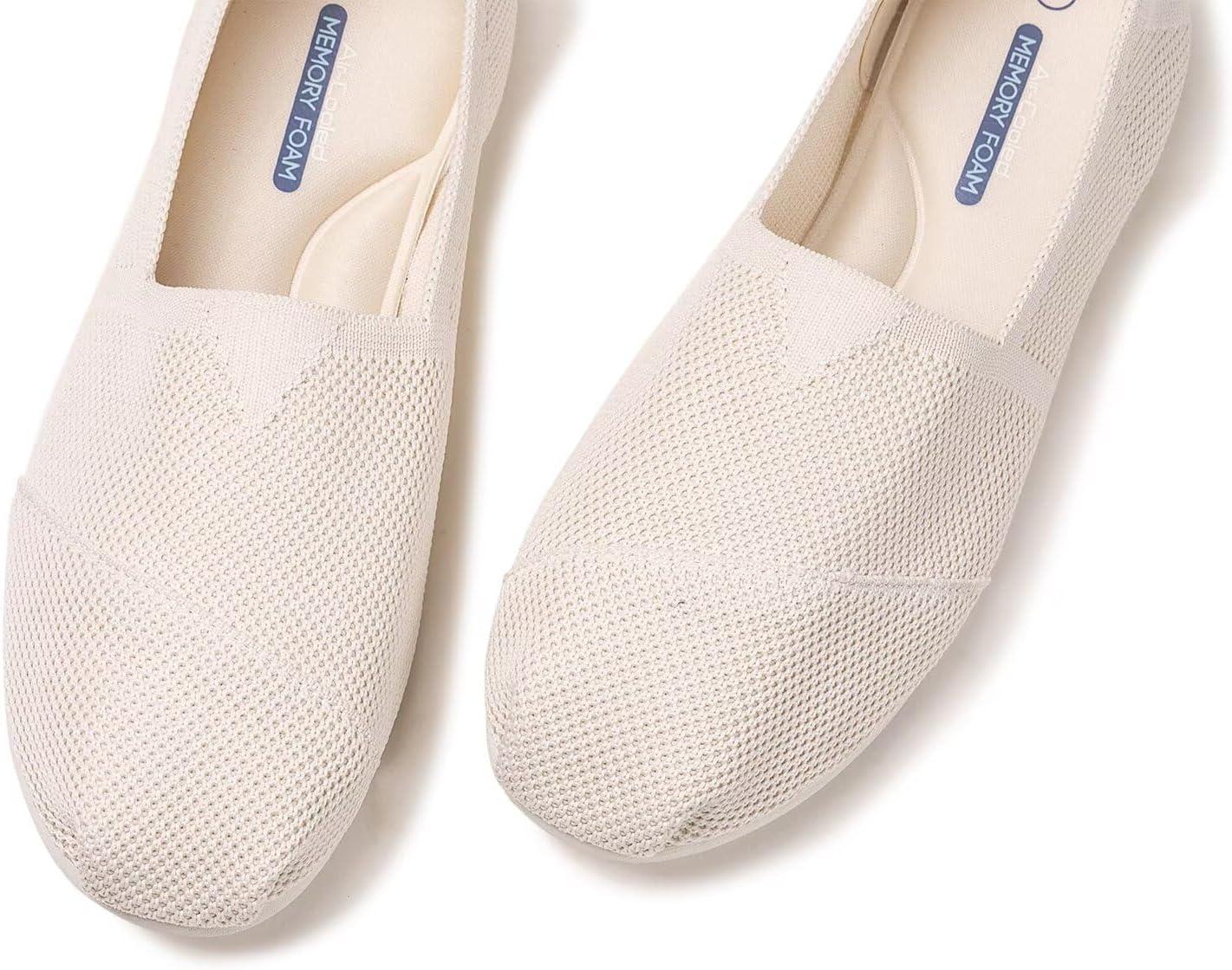 Frank Mully Women’s Knitted Square Toe Flats Comfortable Loafer Shoes Office Work Shoes Lightweight(Cream)