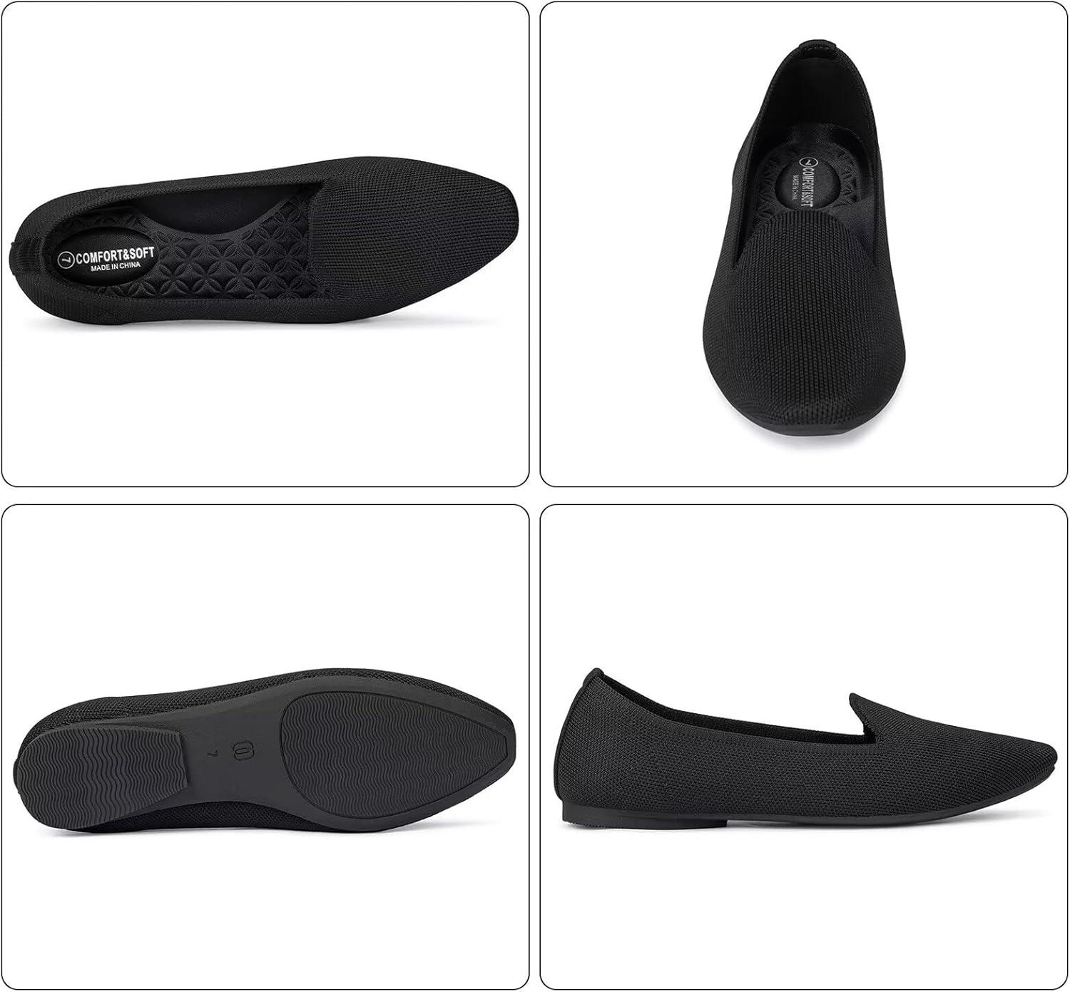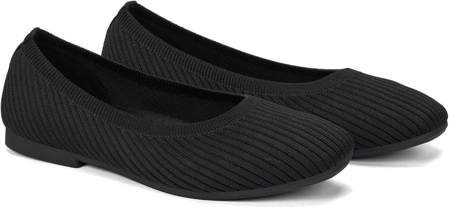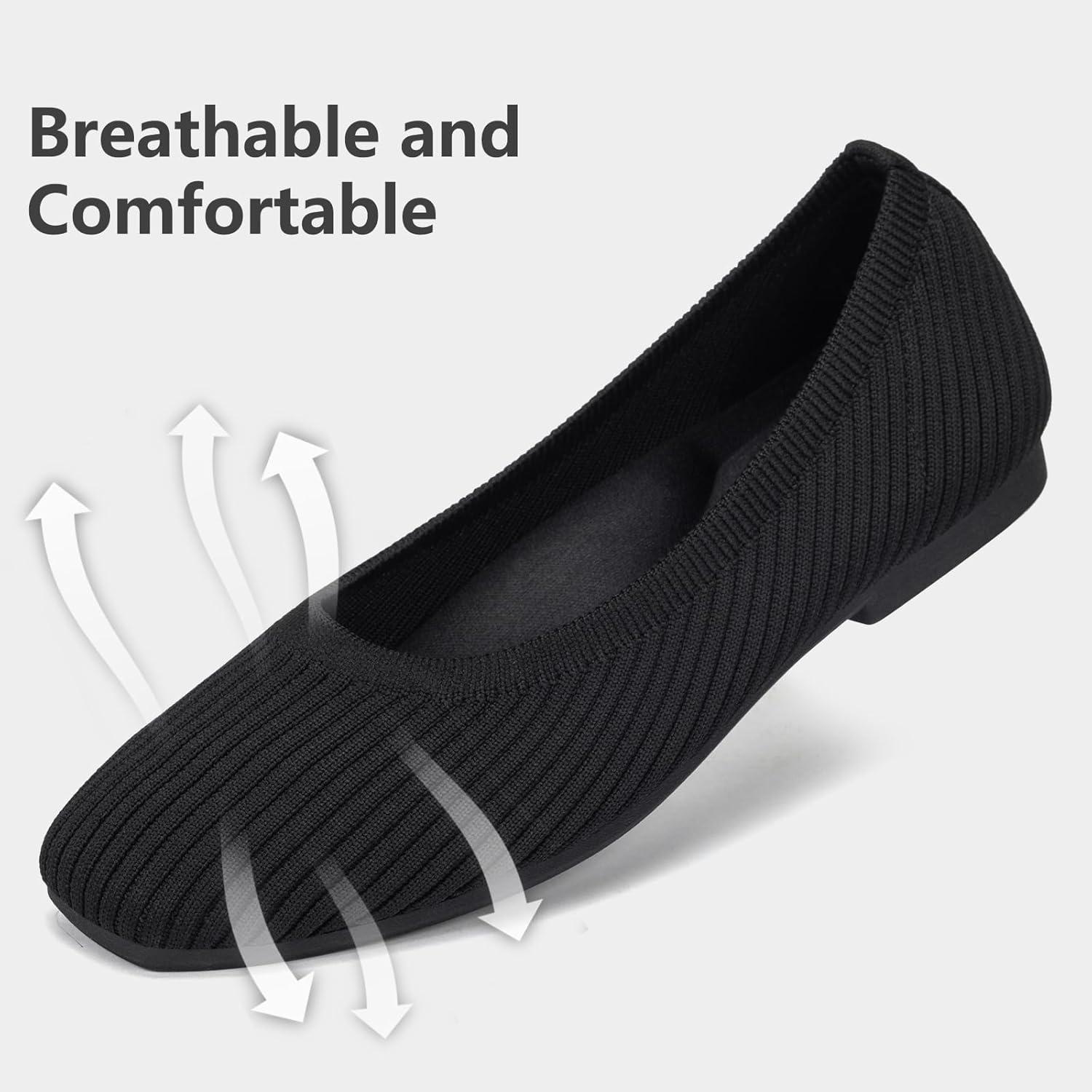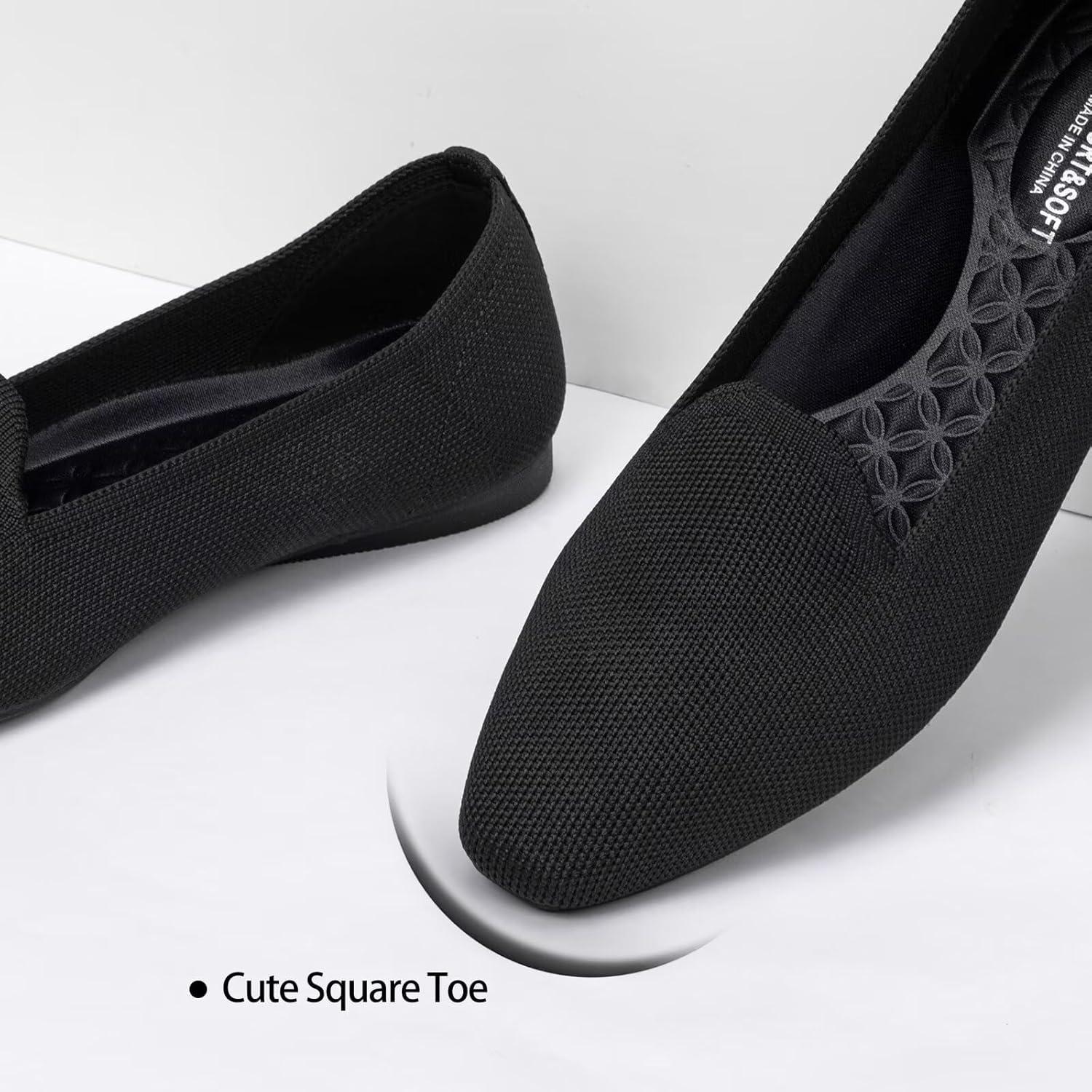 Frank Mully Women’s Knitted Square Toe Flats Comfortable Loafer Shoes Office Work Shoes Lightweight(Black)