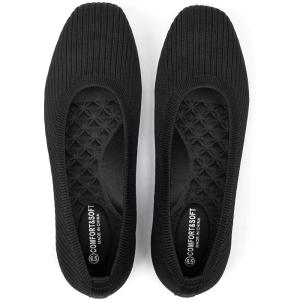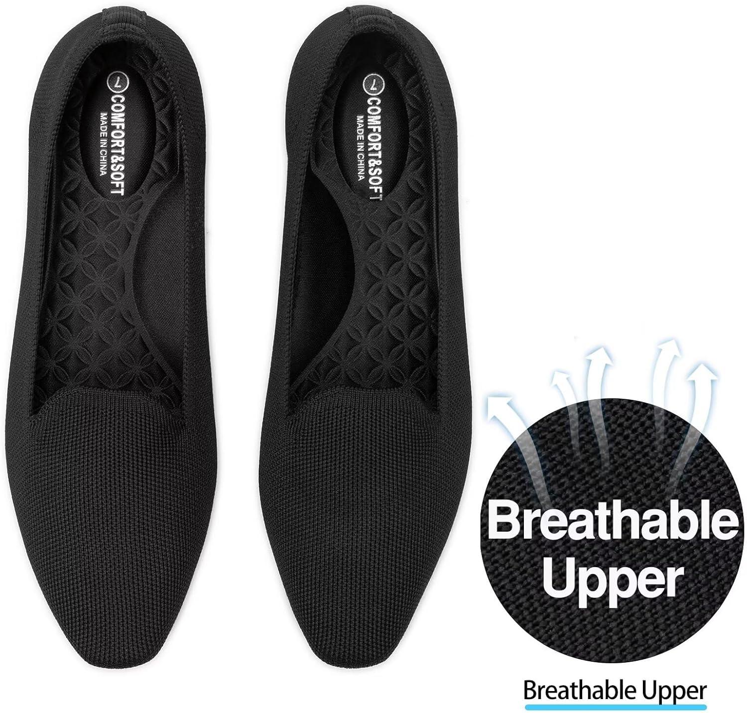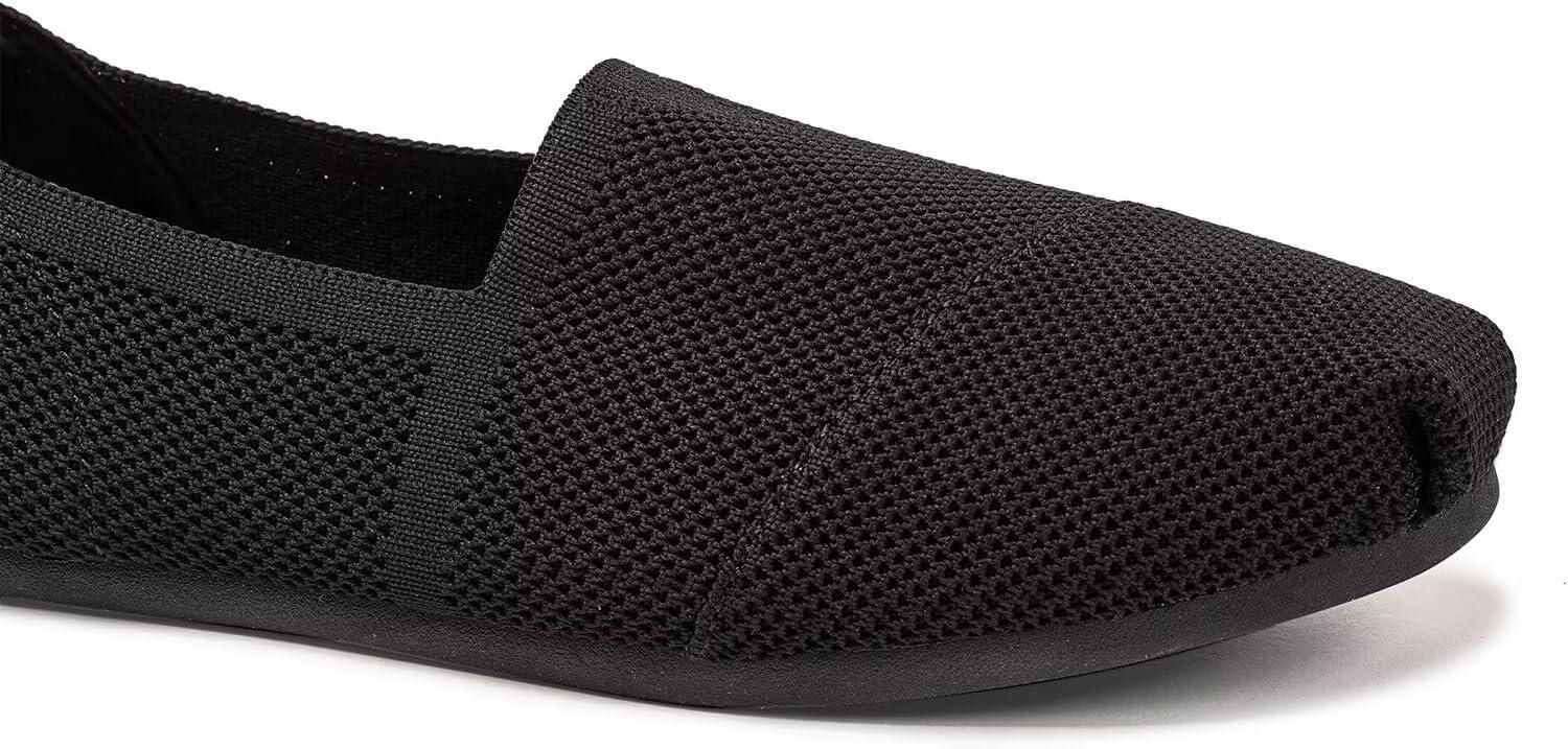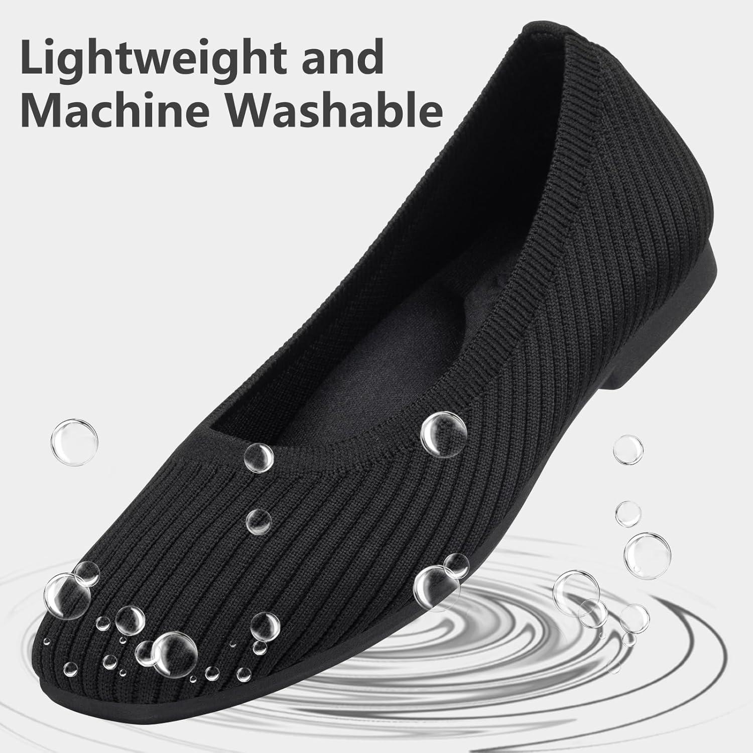 Frank Mully Women’s Knitted Square Toe Flats Comfortable Loafer Shoes Office Work Shoes Lightweight(Black)