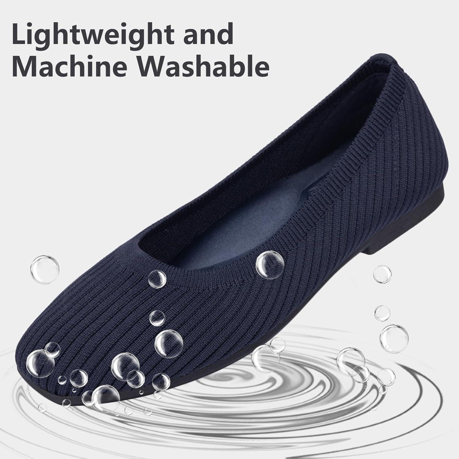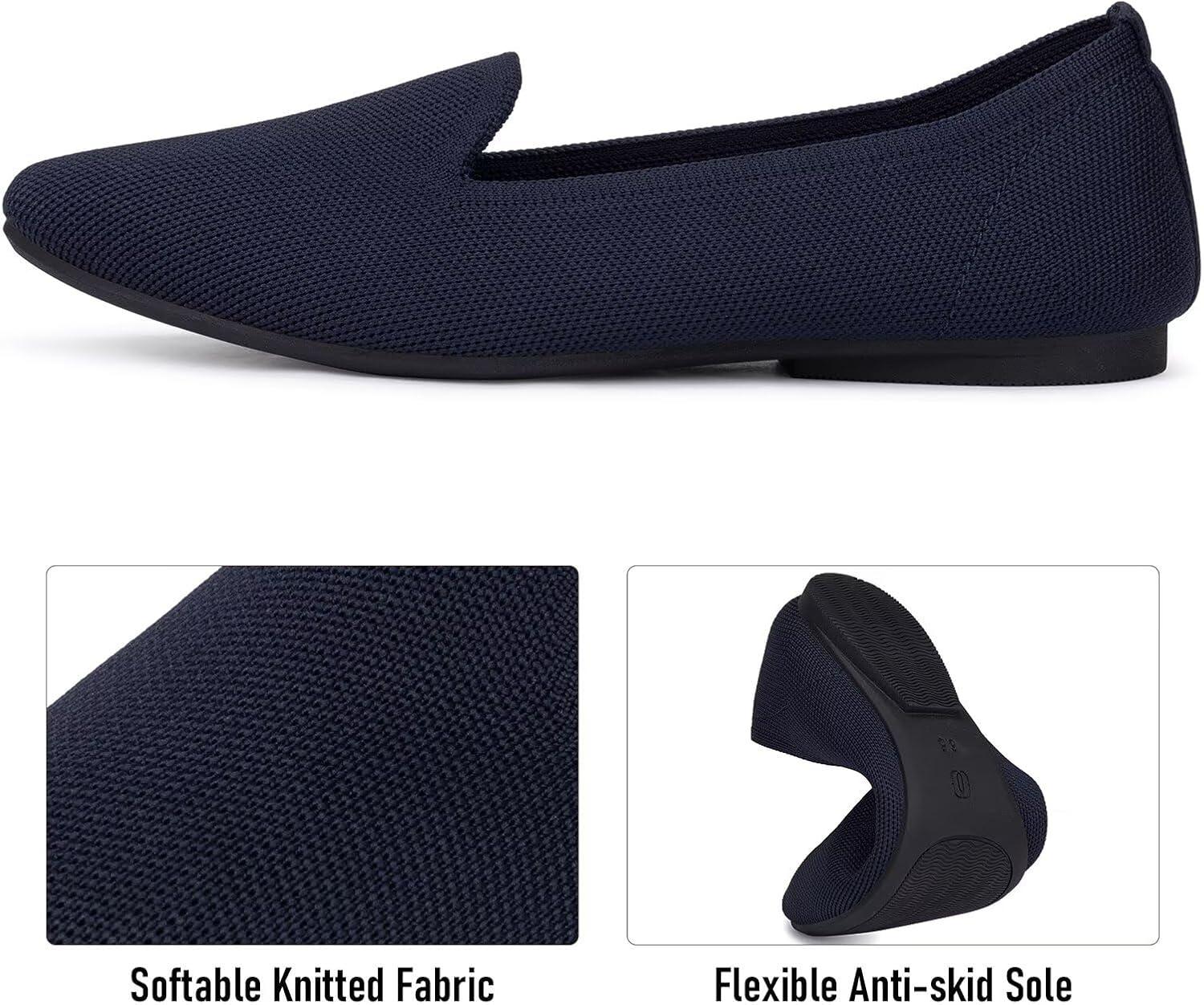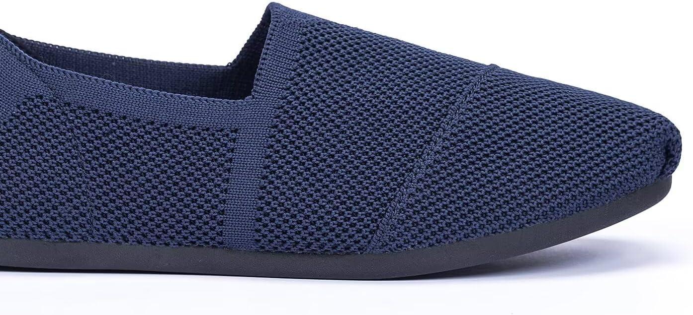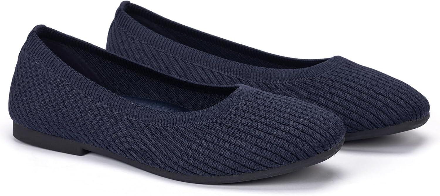 Frank Mully Women’s Knitted Square Toe Flats Comfortable Loafer Shoes Office Work Shoes Lightweight(Navy)