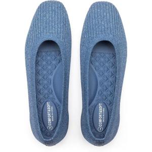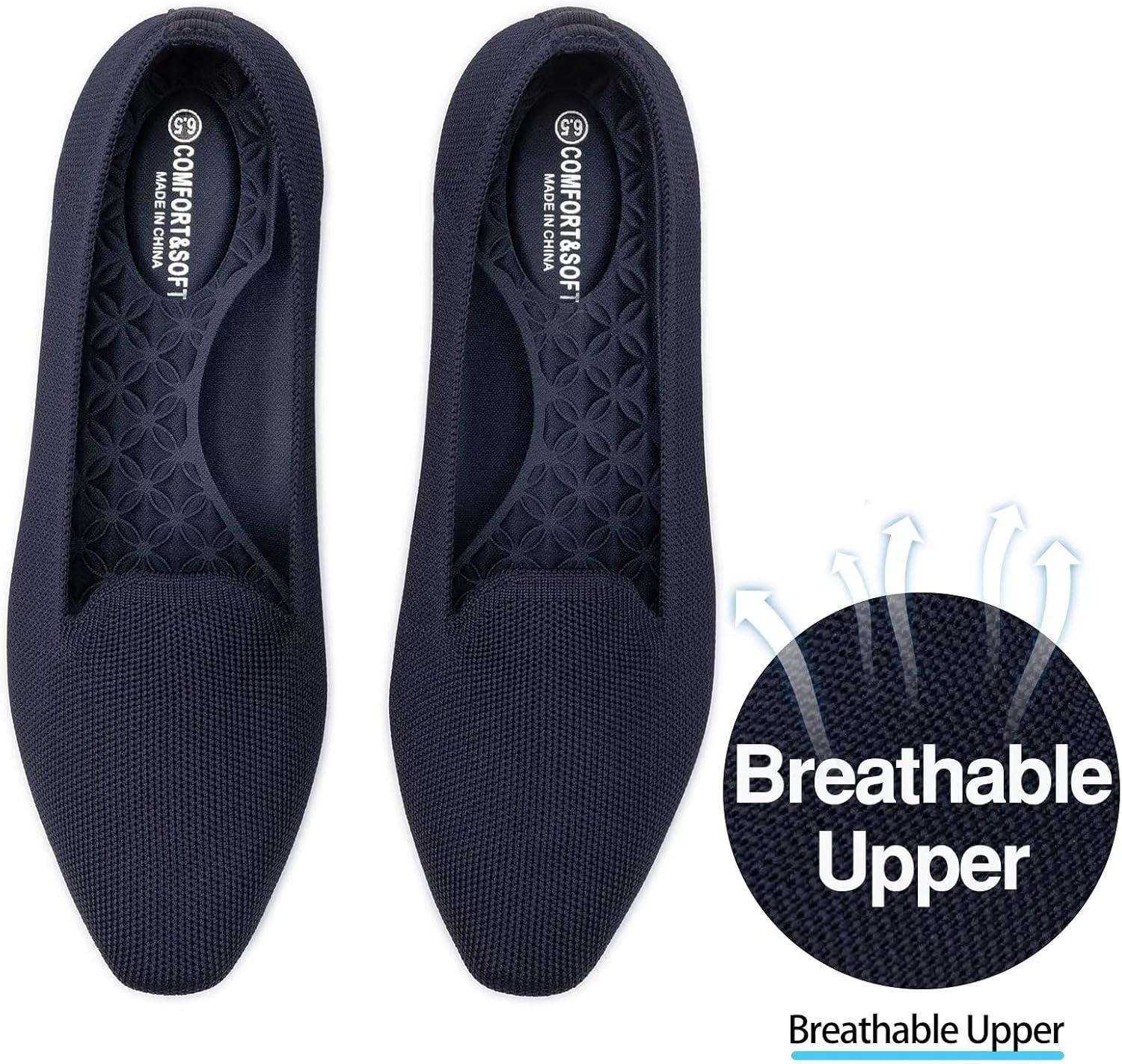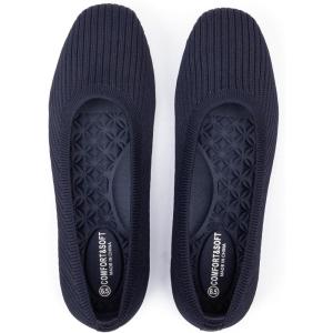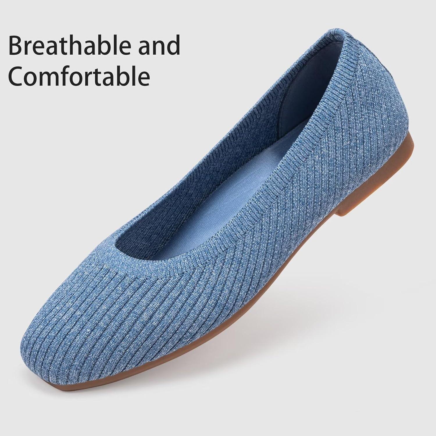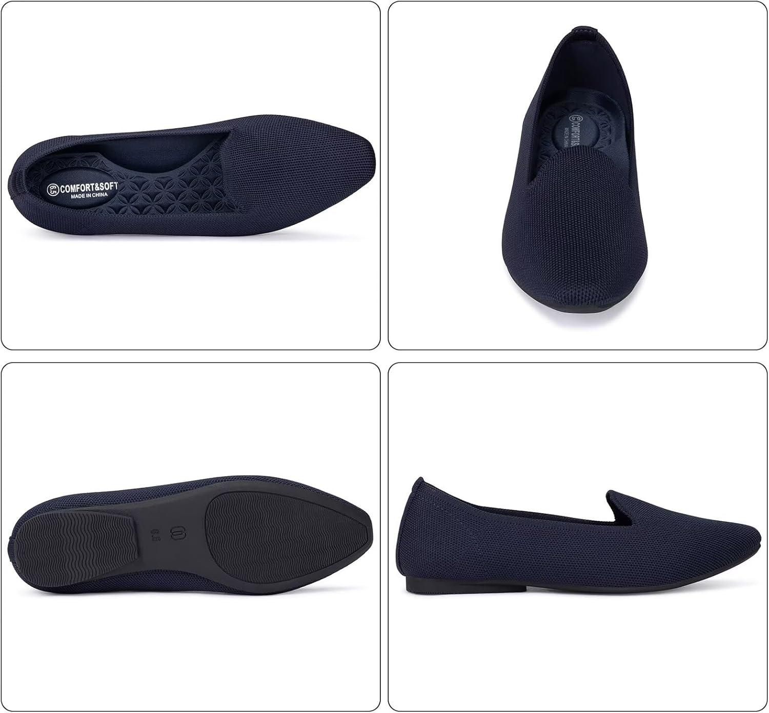 Frank Mully Women’s Knitted Square Toe Flats Comfortable Loafer Shoes Office Work Shoes Lightweight(Navy)