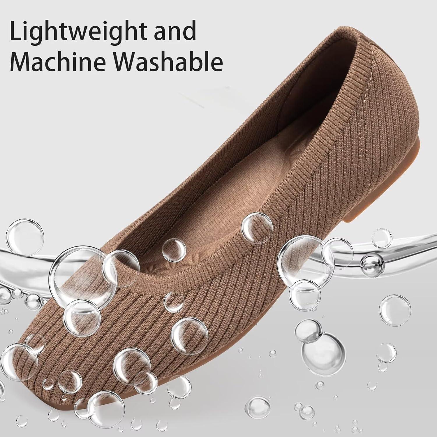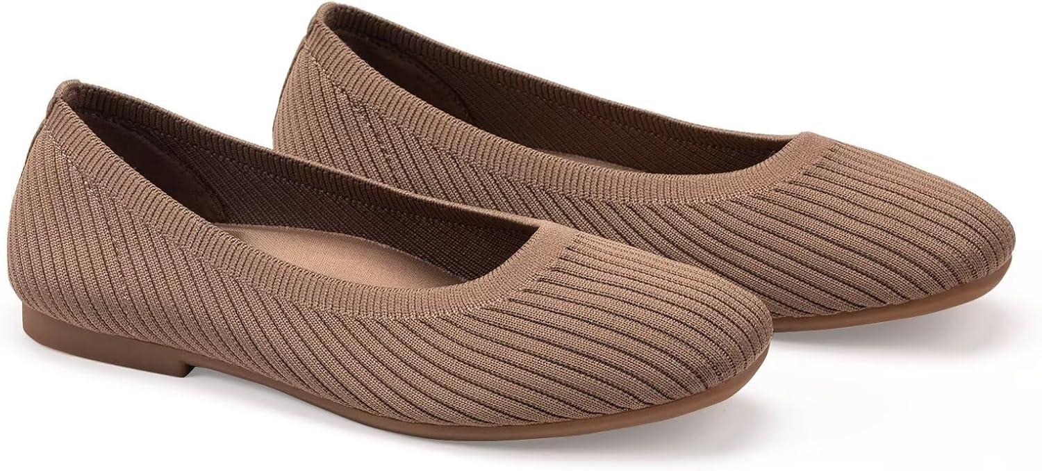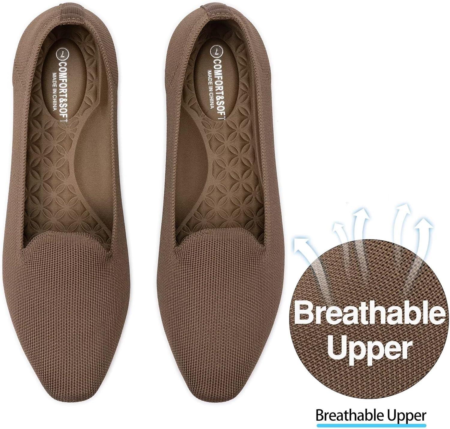 Frank Mully Women’s Knitted Square Toe Flats Comfortable Loafer Shoes Office Work Shoes Lightweight(Brown)
