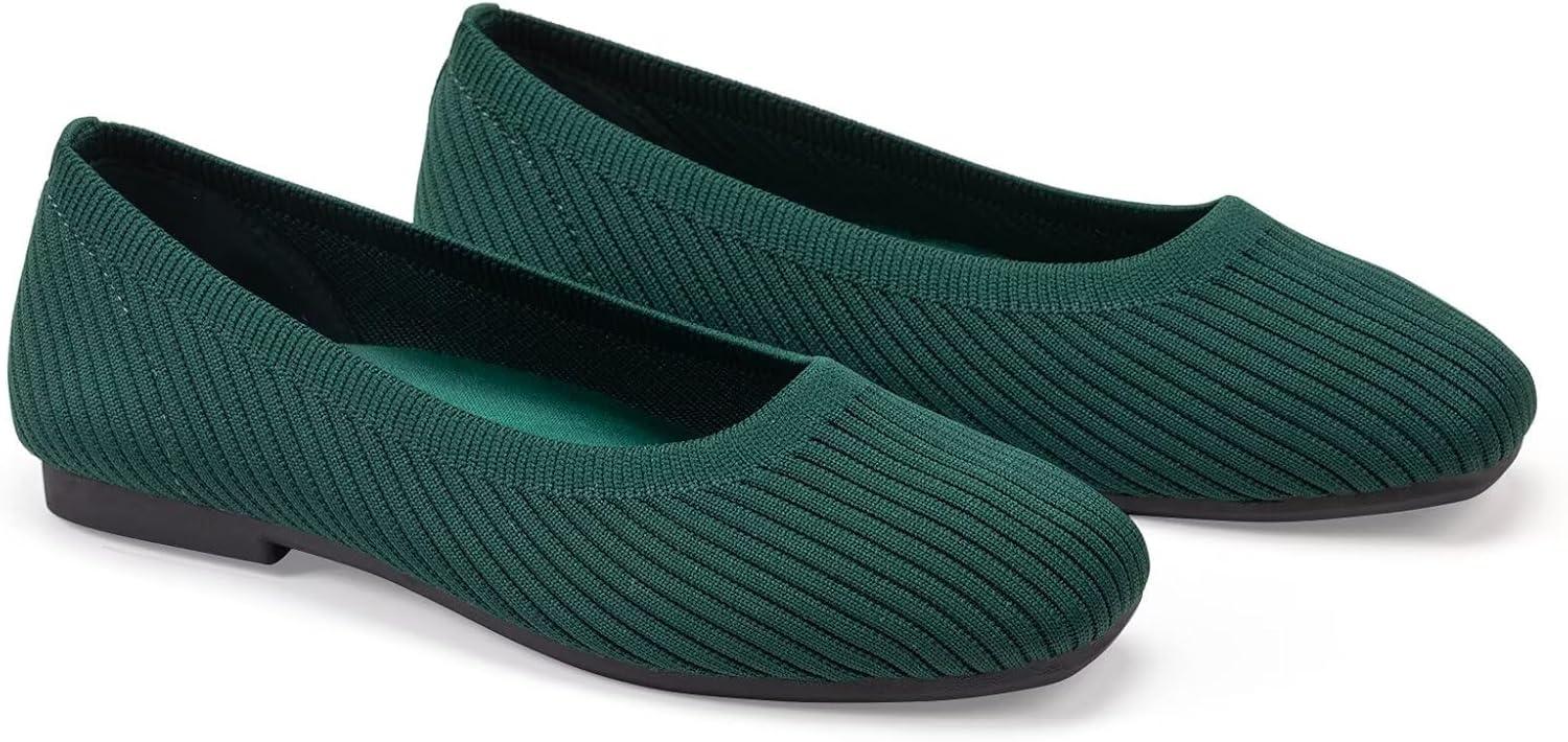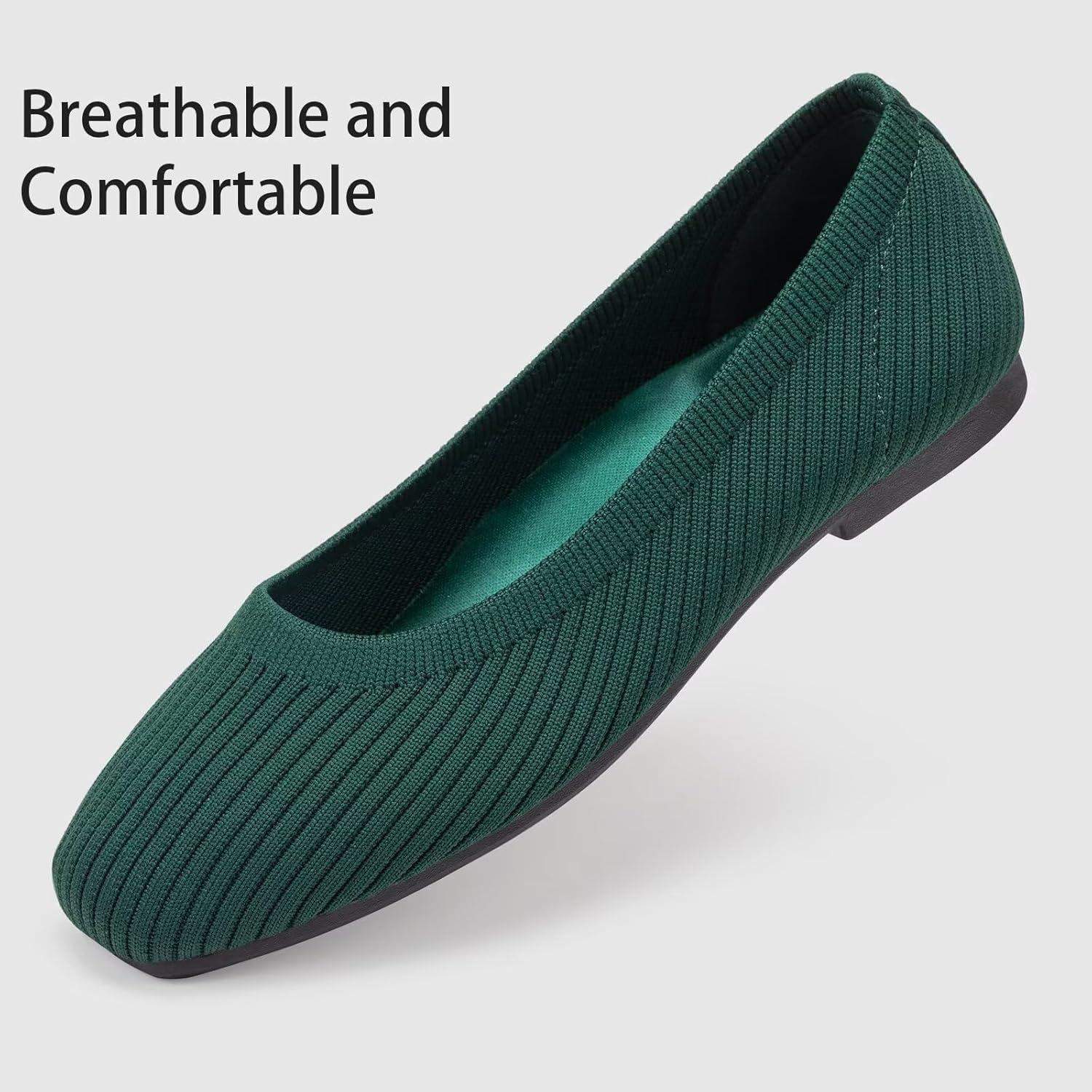 Frank Mully Women’s Flats Square Toe Flats Comfortable Slip on Washable Ballet Flats Shoes for Women Dressy Work(Green)