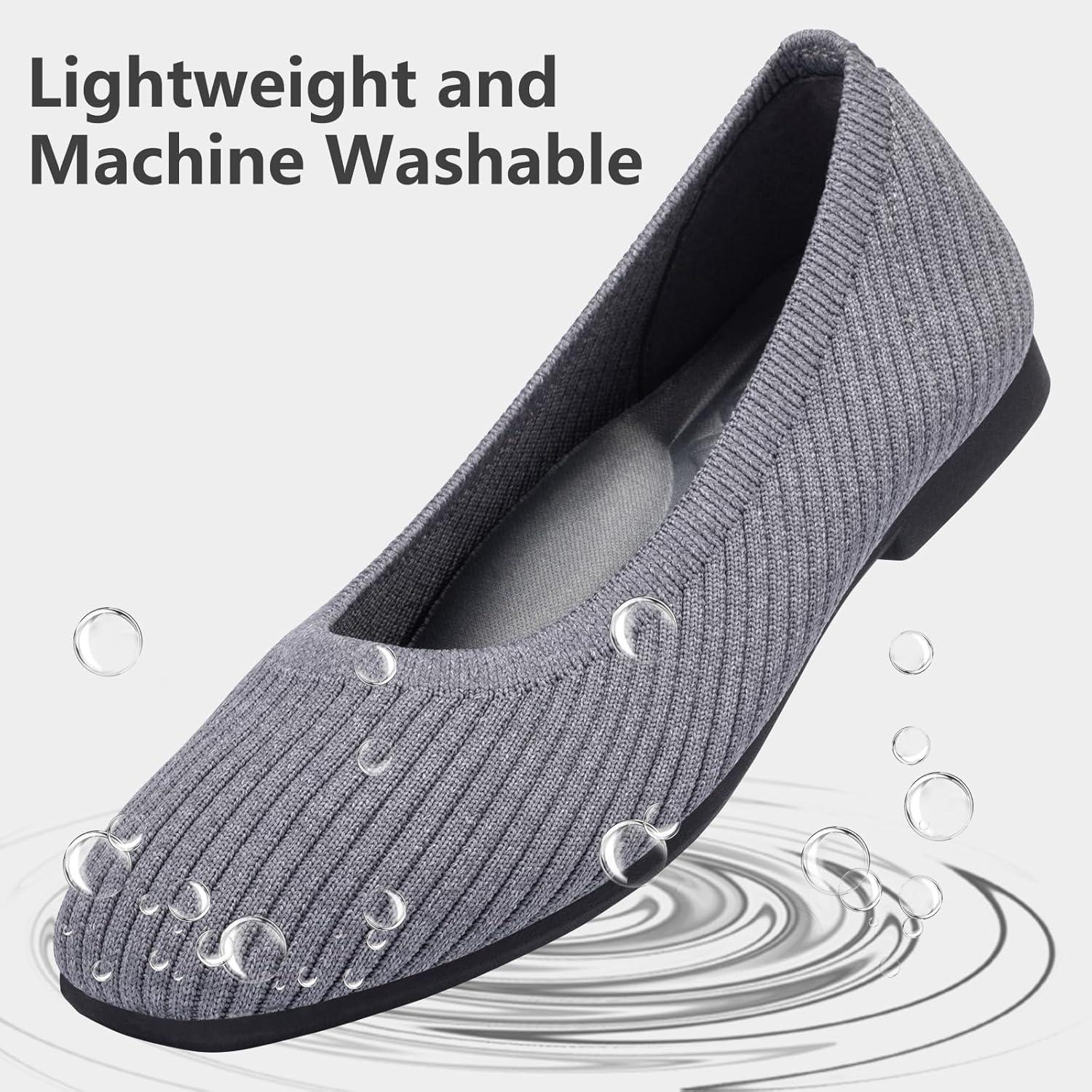 Frank Mully Women’s Flats Square Toe Flats Comfortable Slip on Washable Ballet Flats Shoes for Women Dressy Work(Grey)