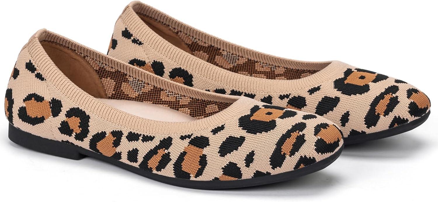 Frank Mully Women’s Flats Square Toe Flats Comfortable Slip on Washable Ballet Flats Shoes for Women Dressy Work(Leopard Beige)