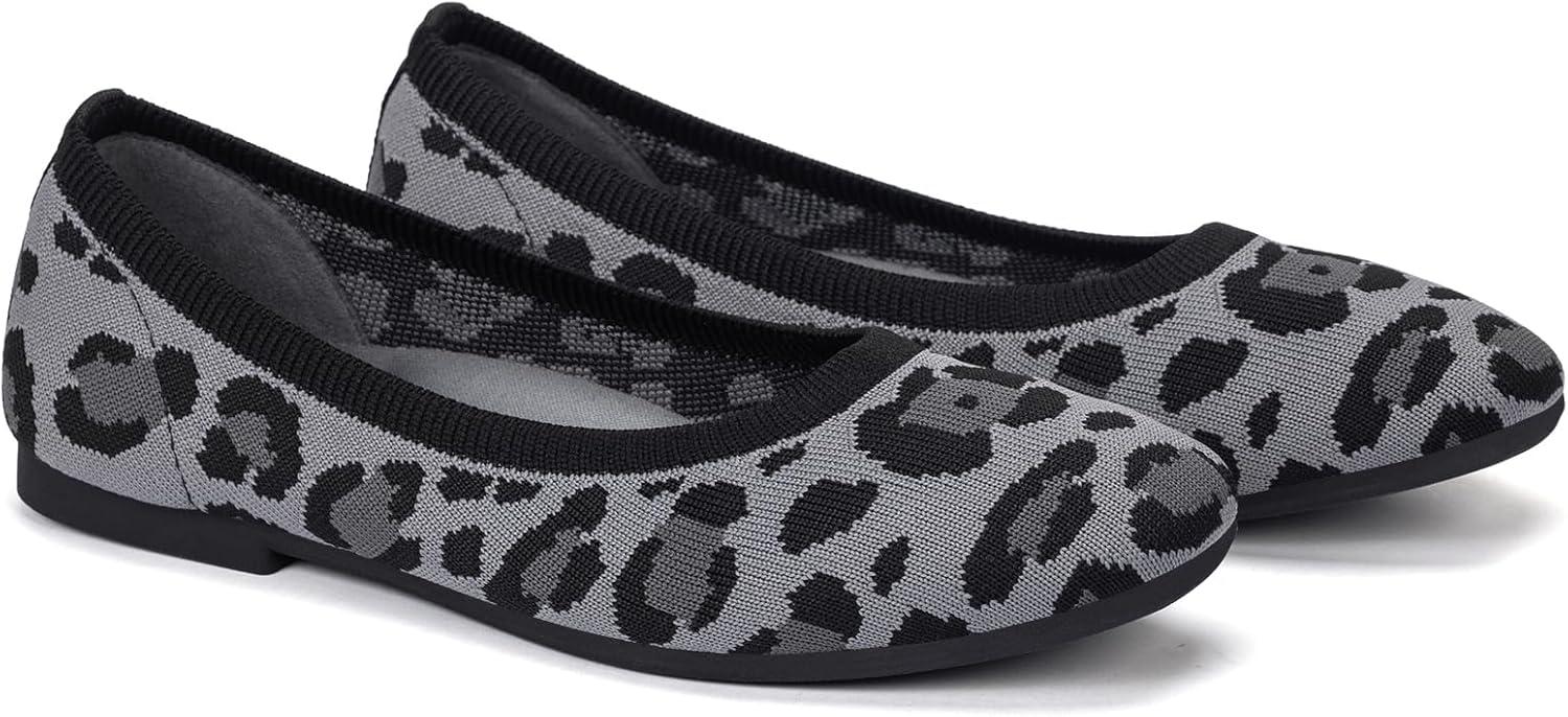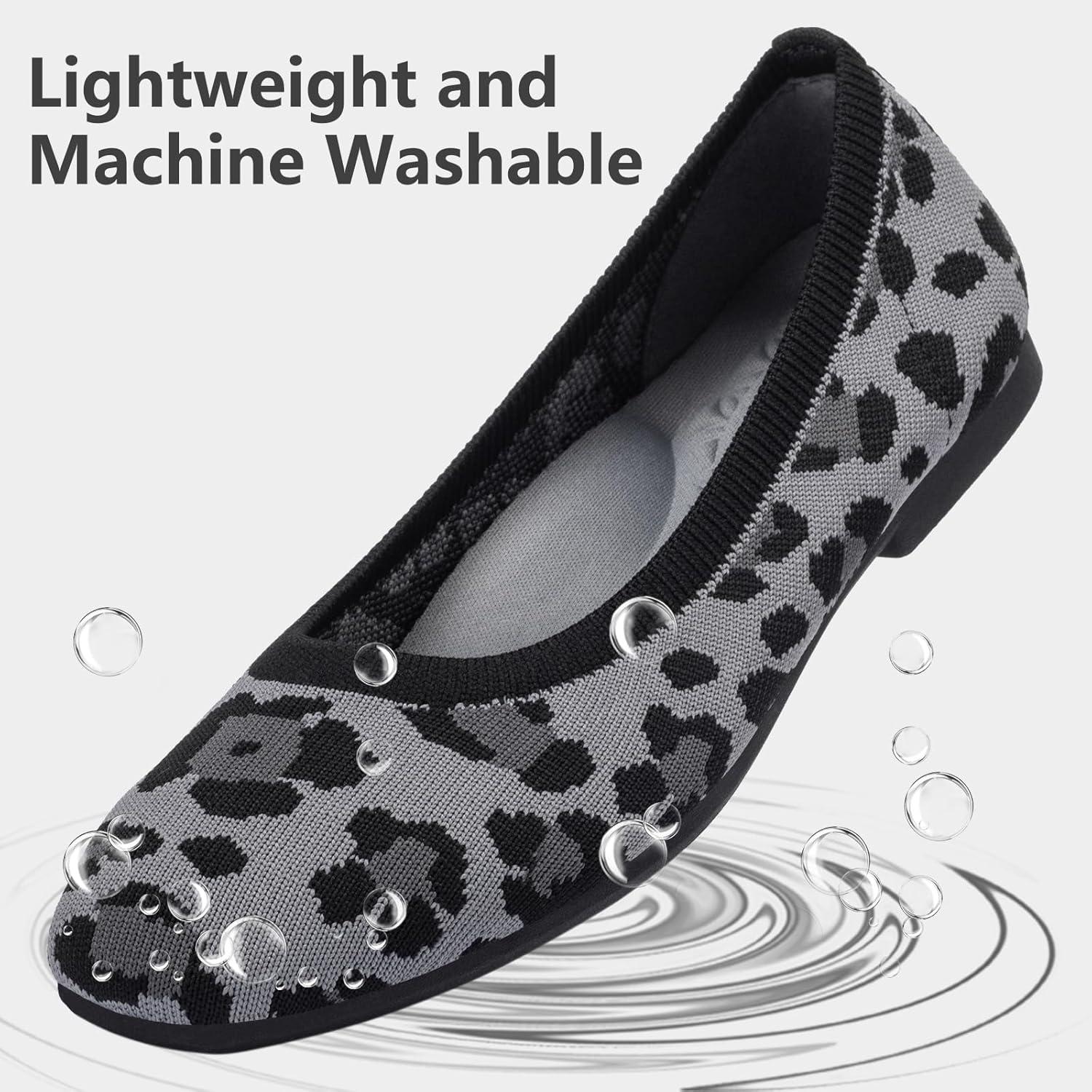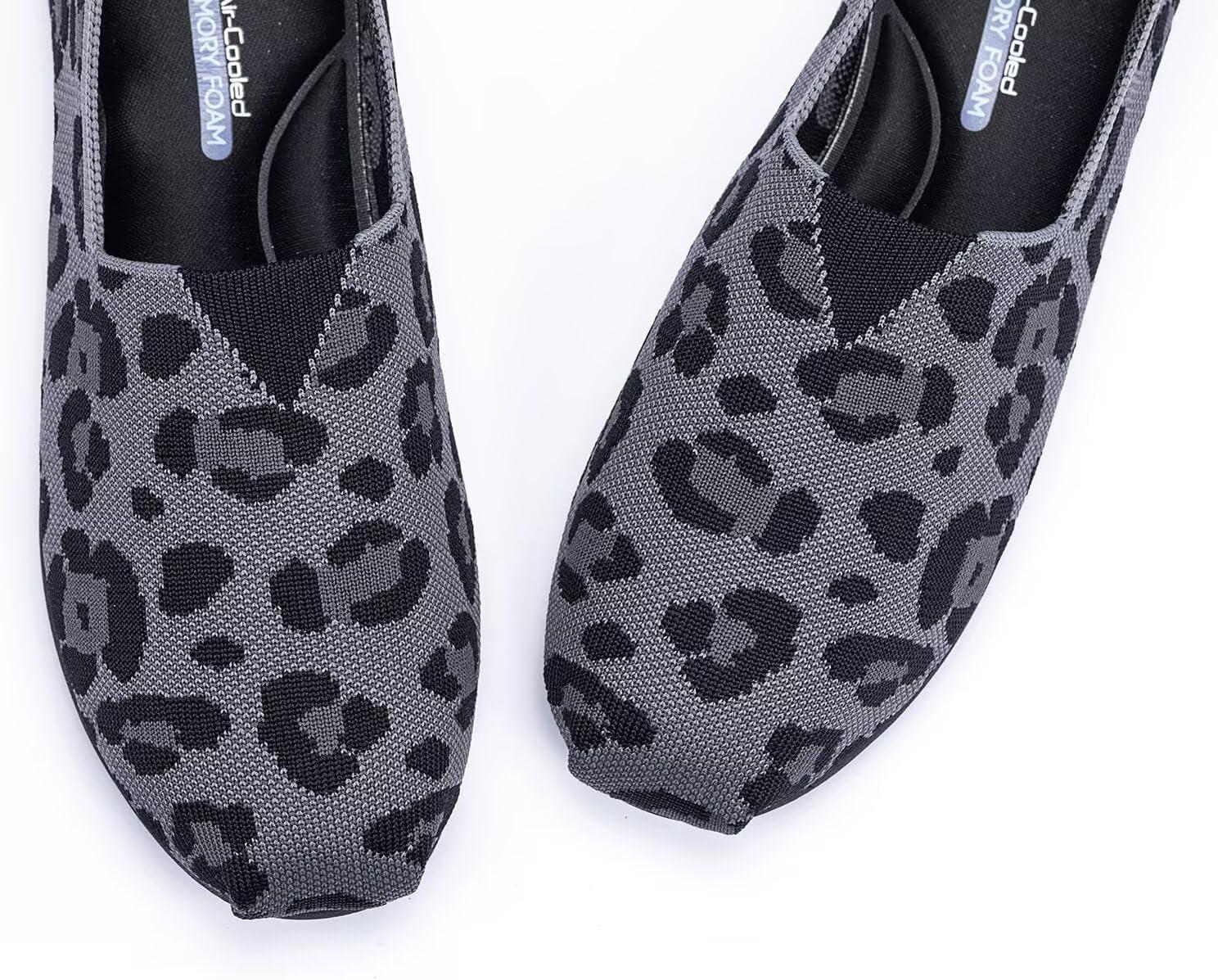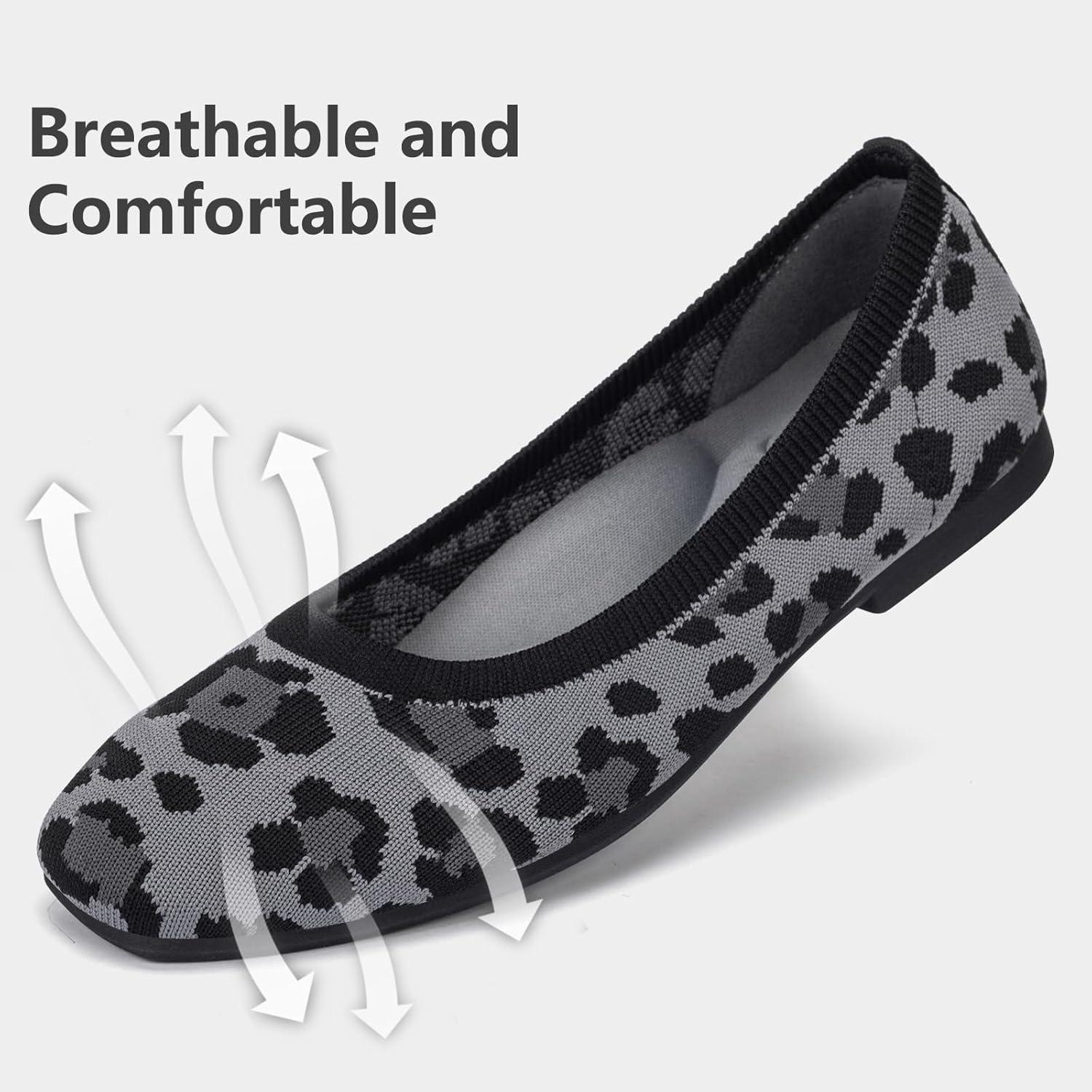 Frank Mully Women’s Flats Square Toe Flats Comfortable Slip on Washable Ballet Flats Shoes for Women Dressy Work(Leopard Grey)