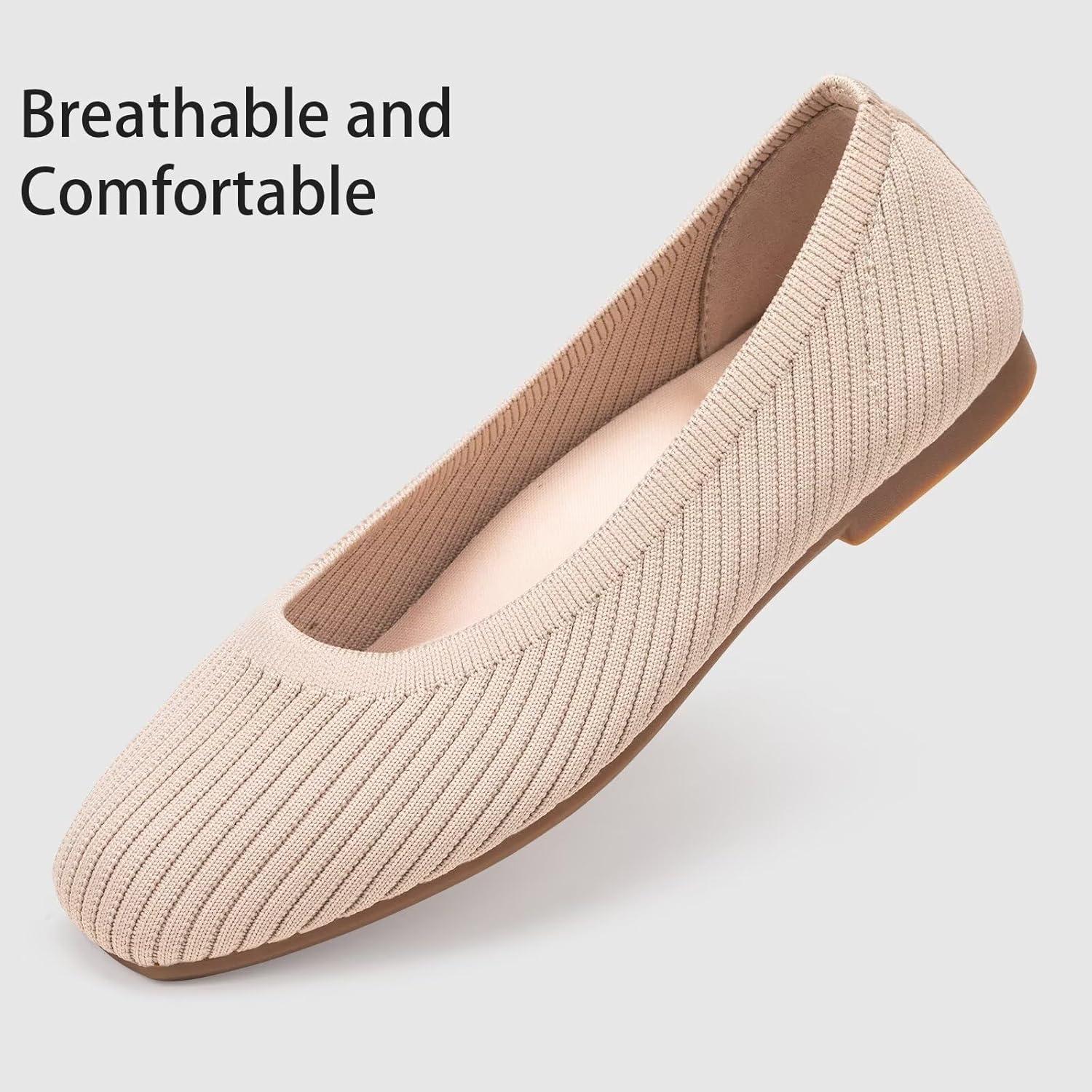 Frank Mully Women’s Flats Square Toe Flats Comfortable Slip on Washable Ballet Flats Shoes for Women Dressy Work(Nude)