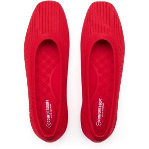 Frank Mully Women’s Flats Square Toe Flats Comfortable Slip on Washable Ballet Flats Shoes for Women Dressy Work(Red)