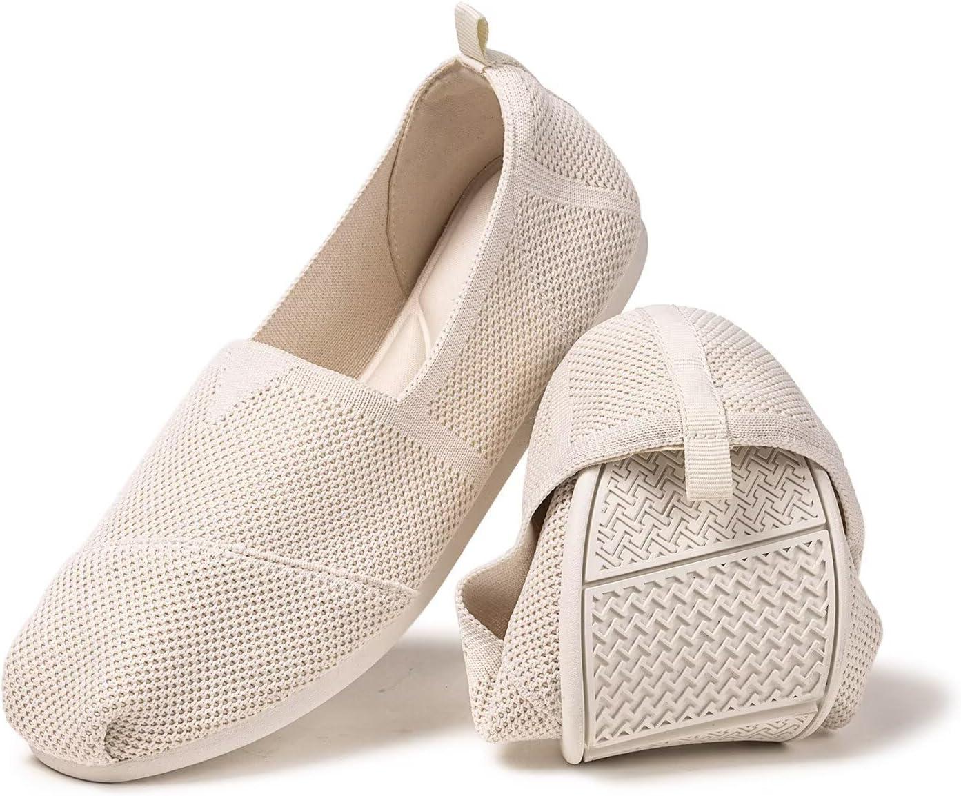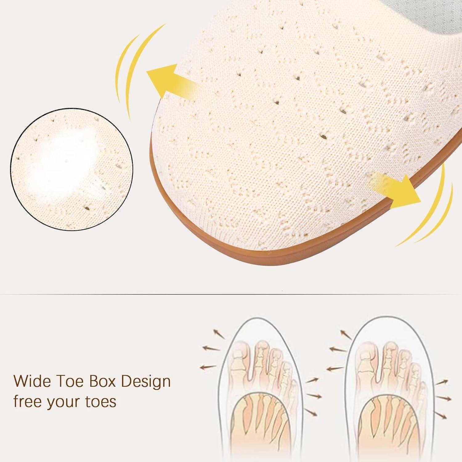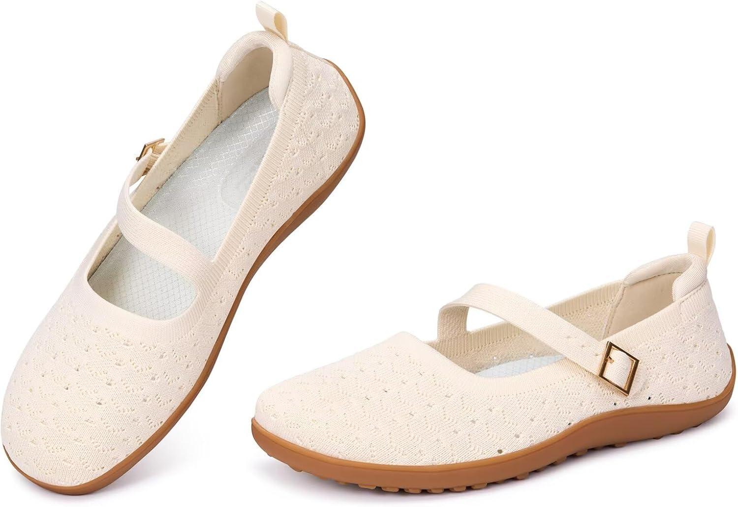 Frank Mully Women’s Wide Width Flats Mary Jane Flat Comofortable Knit Ballet Flat Wide Toe Box Dress Shoes with Adjustable Straps(Beige/Mesh)