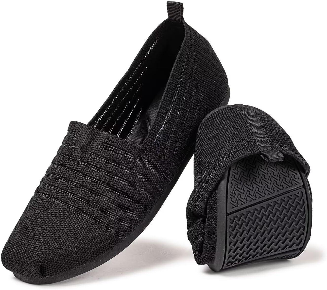 Frank Mully Women’s Knitted Slip On Loafer Flats Comfortable Lightweight Breathable Casual Shoes Knit Loafers for Work, Travel & Daily Wear(Black-4)