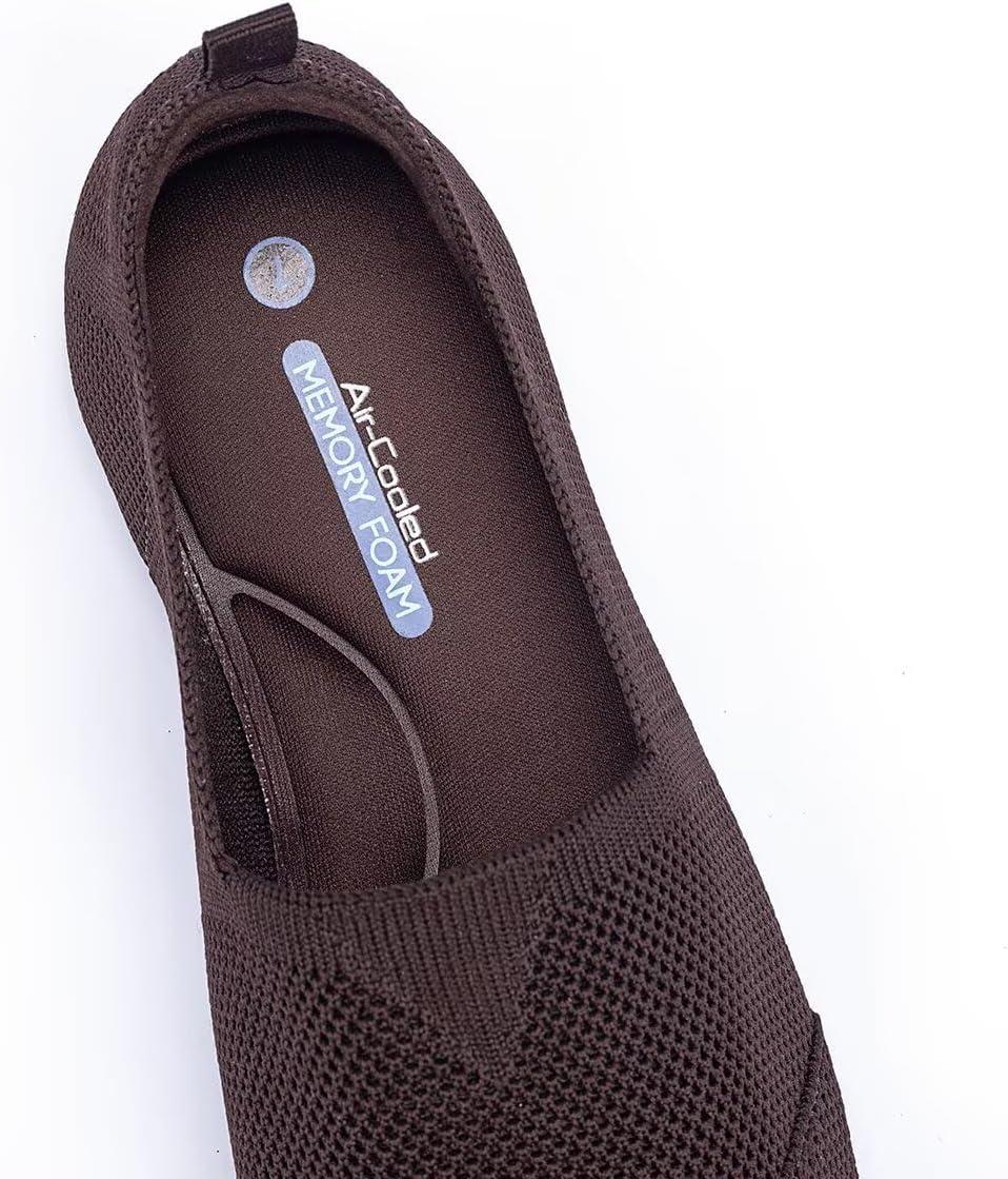 Frank Mully Women’s Knitted Slip On Loafer Flats Comfortable Lightweight Breathable Casual Shoes Knit Loafers for Work, Travel & Daily Wear(Coffee-2)