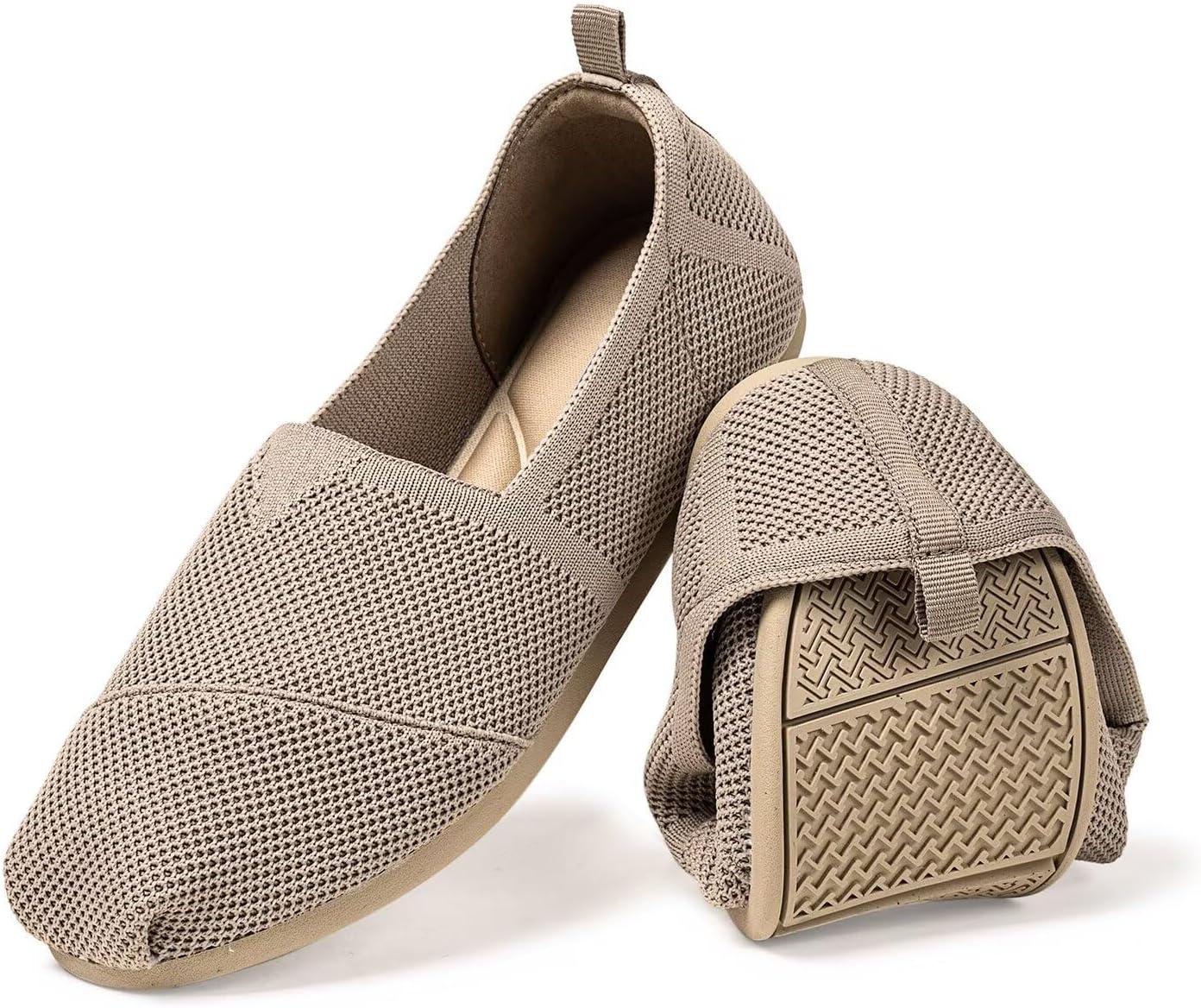 Frank Mully Women’s Knitted Slip On Loafer Flats Comfortable Lightweight Breathable Casual Shoes Knit Loafers for Work, Travel & Daily Wear(Khaki-2)