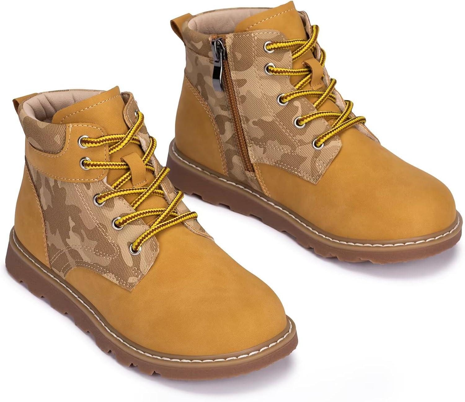 Frank Mully Boys Girls Outdoor Boots Kids Comfort Work Boots Winter Boot Lace Up Hiking Shoes (Toddler/Little Kid/Big Kid)(2006camel)
