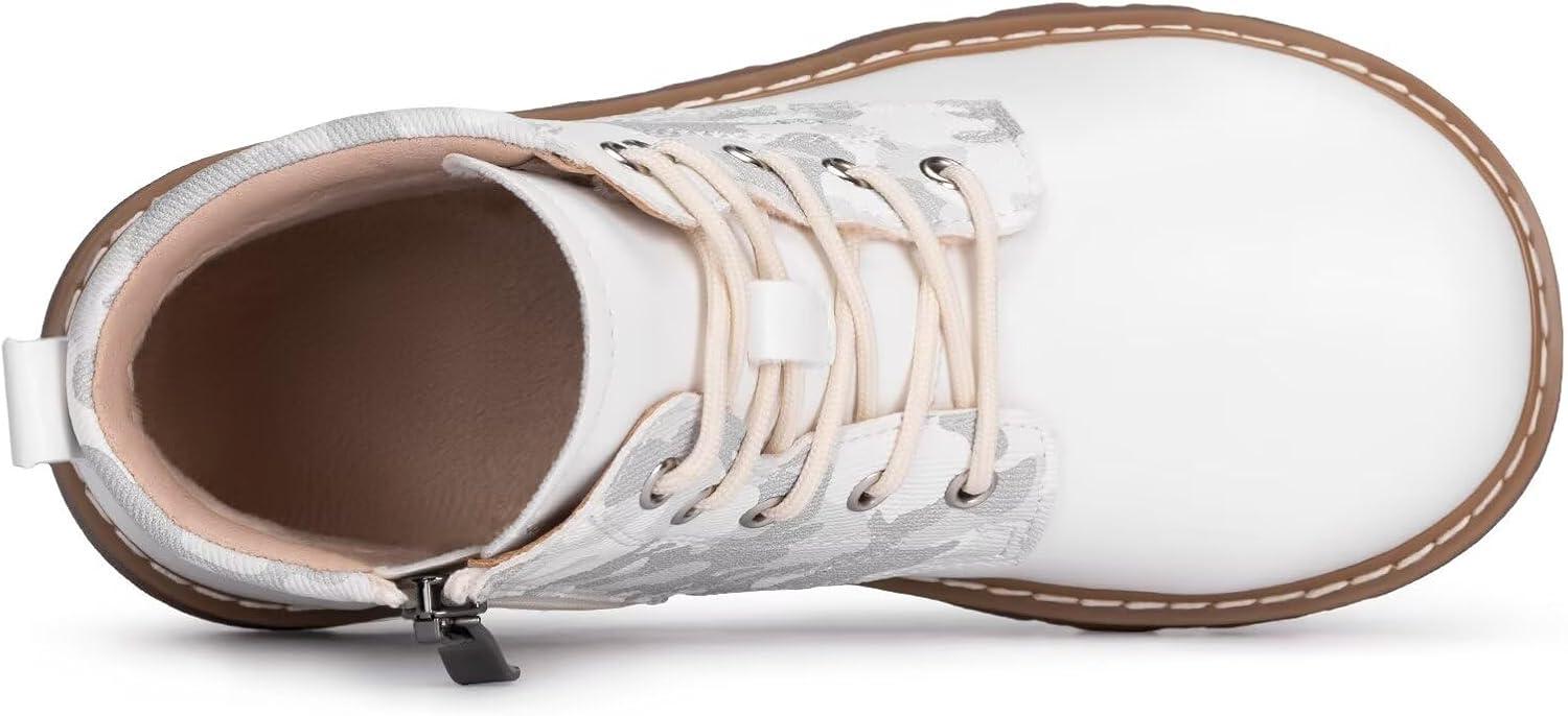 Frank Mully Boys Girls Outdoor Boots Kids Comfort Work Boots Winter Boot Lace Up Hiking Shoes (Toddler/Little Kid/Big Kid)(2006white)