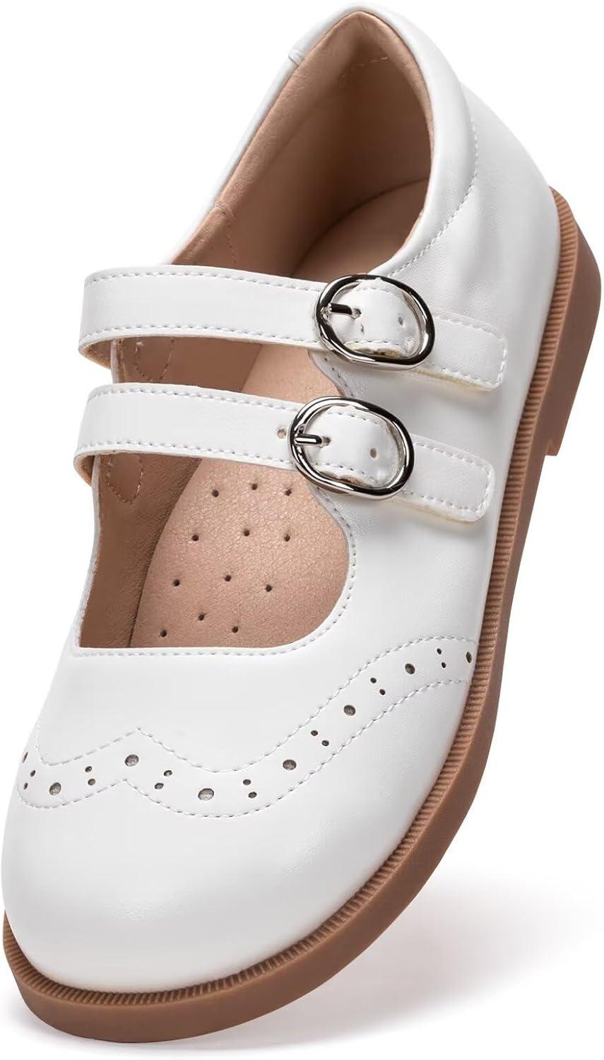 Frank Mully Girls Flats Mary Jane Shoes Round Toe Dress Shoes School Oxford Flats for Toddler/Little Kid(7007white)