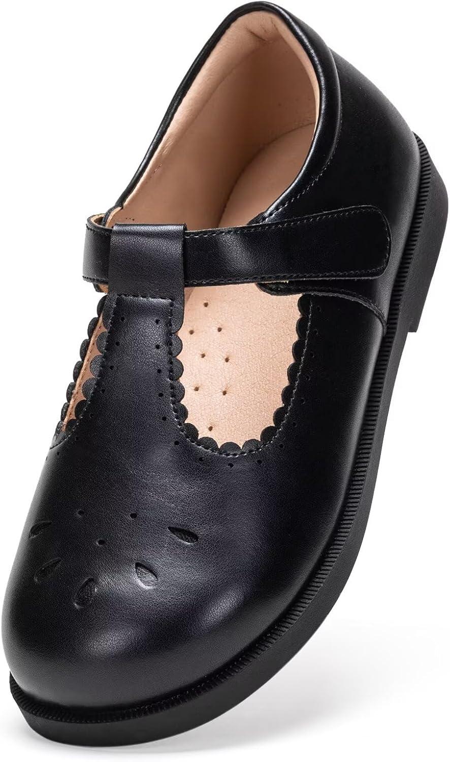 Frank Mully Girls Flats Mary Jane Shoes Round Toe Dress Shoes School Oxford Flats for Toddler/Little Kid(7008black)