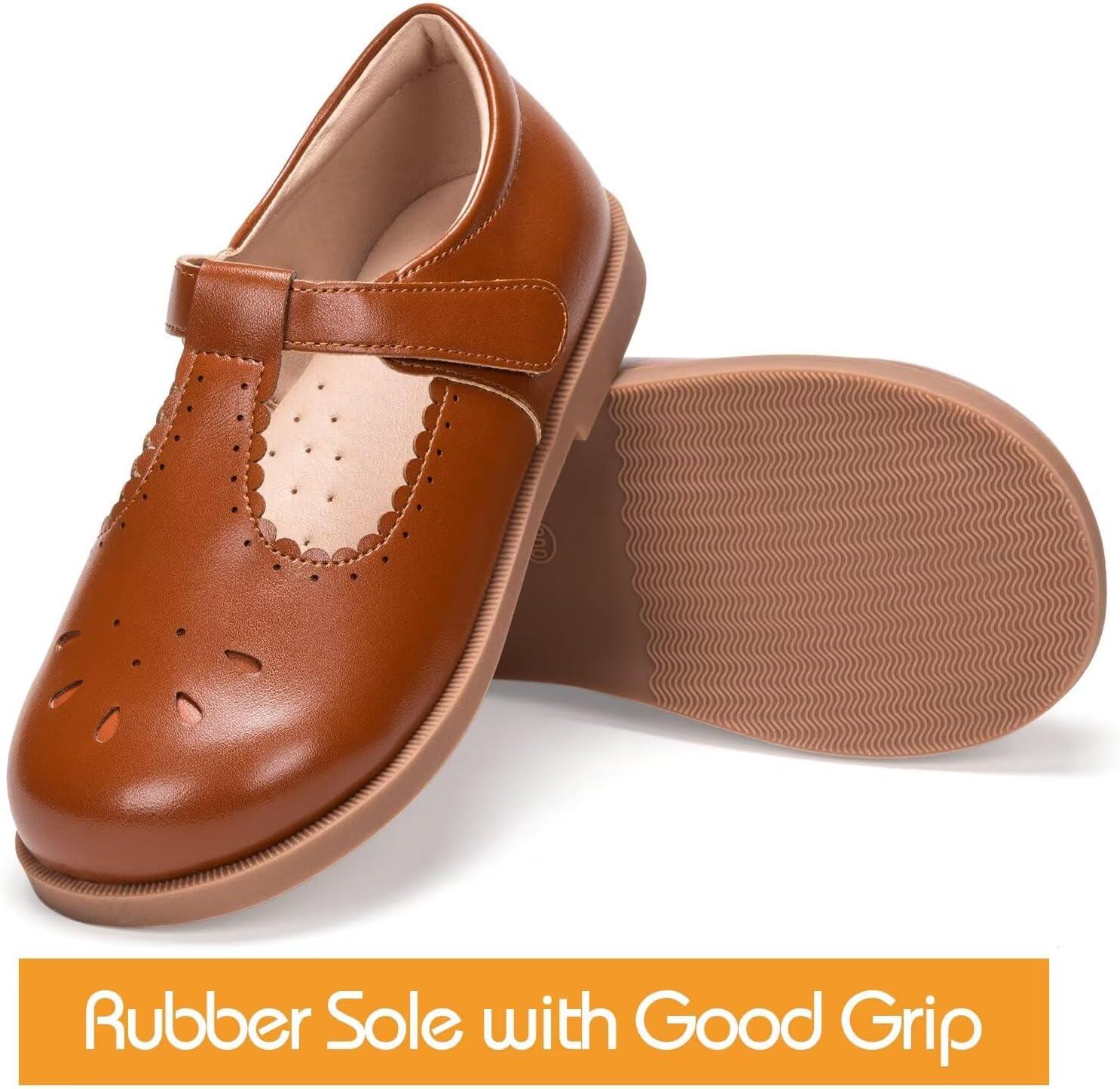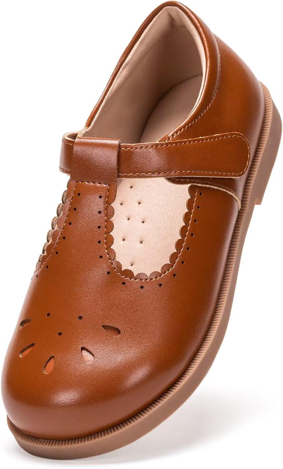 Frank Mully Girls Flats Mary Jane Shoes Round Toe Dress Shoes School Oxford Flats for Toddler/Little Kid(7008brown)