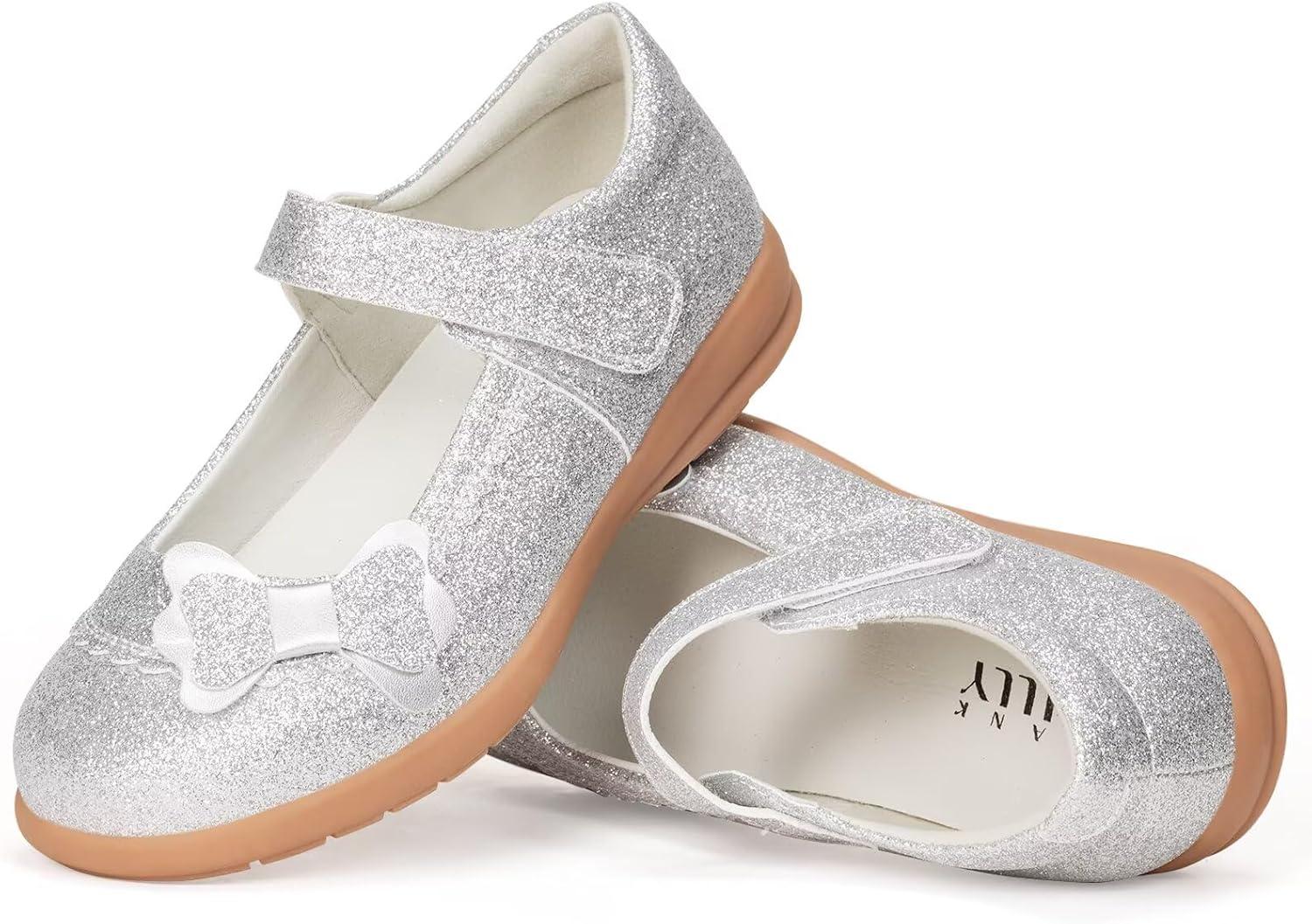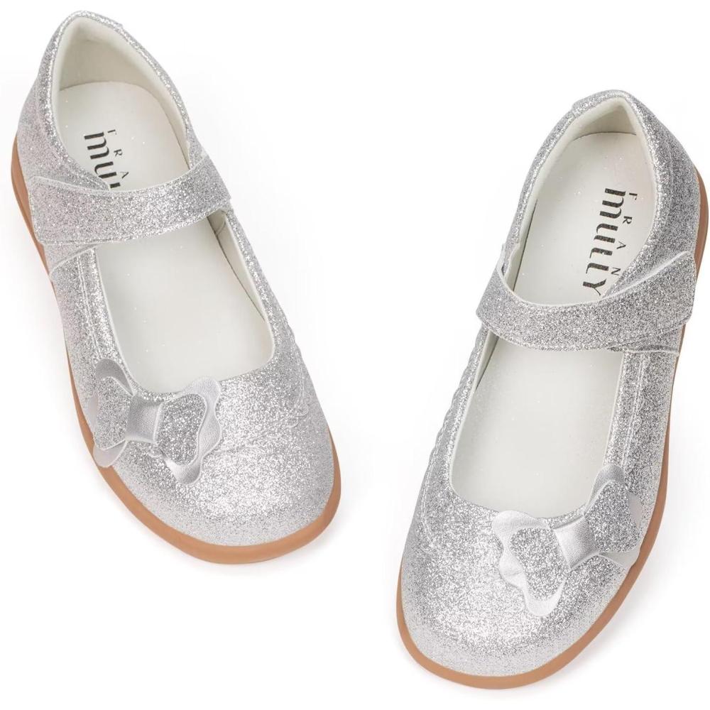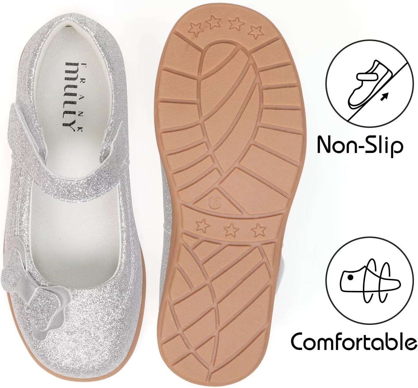 Frank Mully Girls Mary Jane Dress Shoes Slip on Girls Ballet Flat Shoes with Bow for Toddler/Little Kid/Big Kid(Silver)