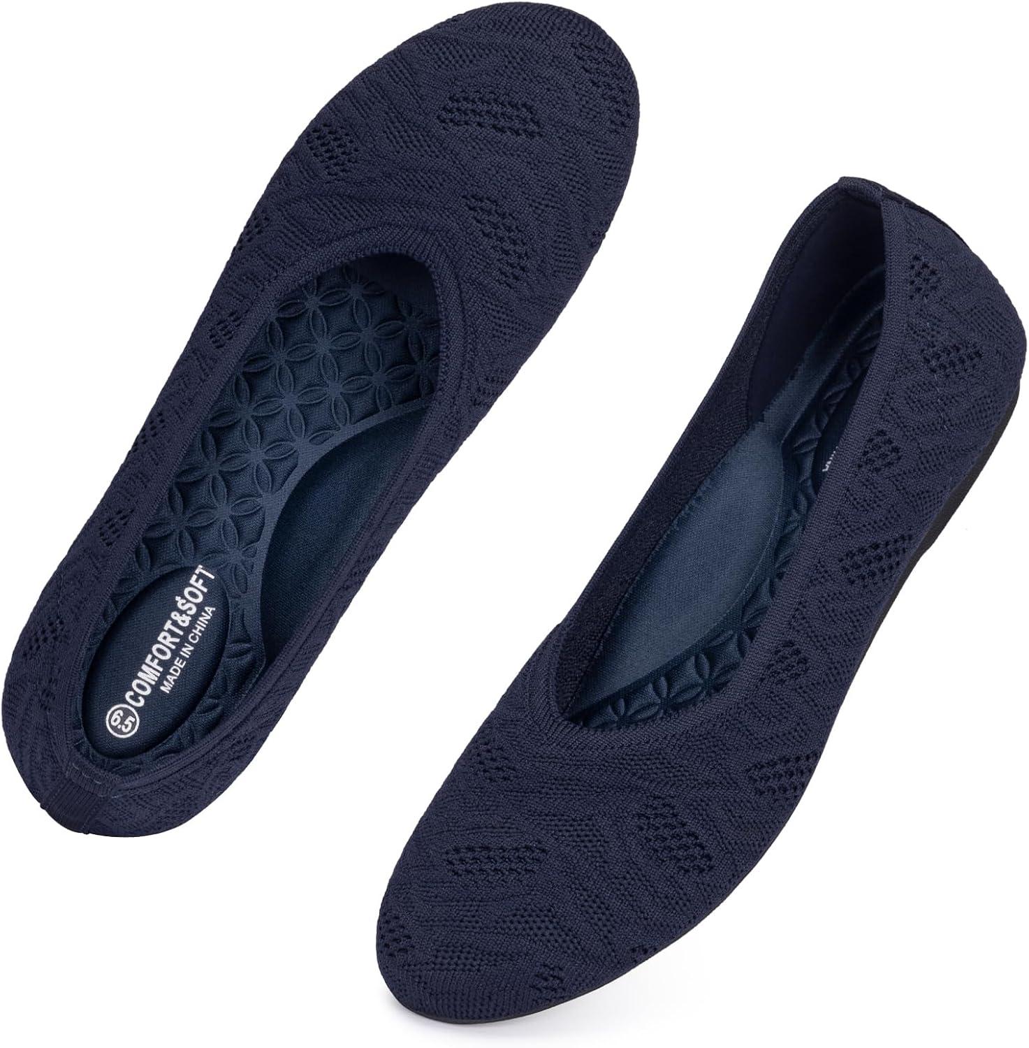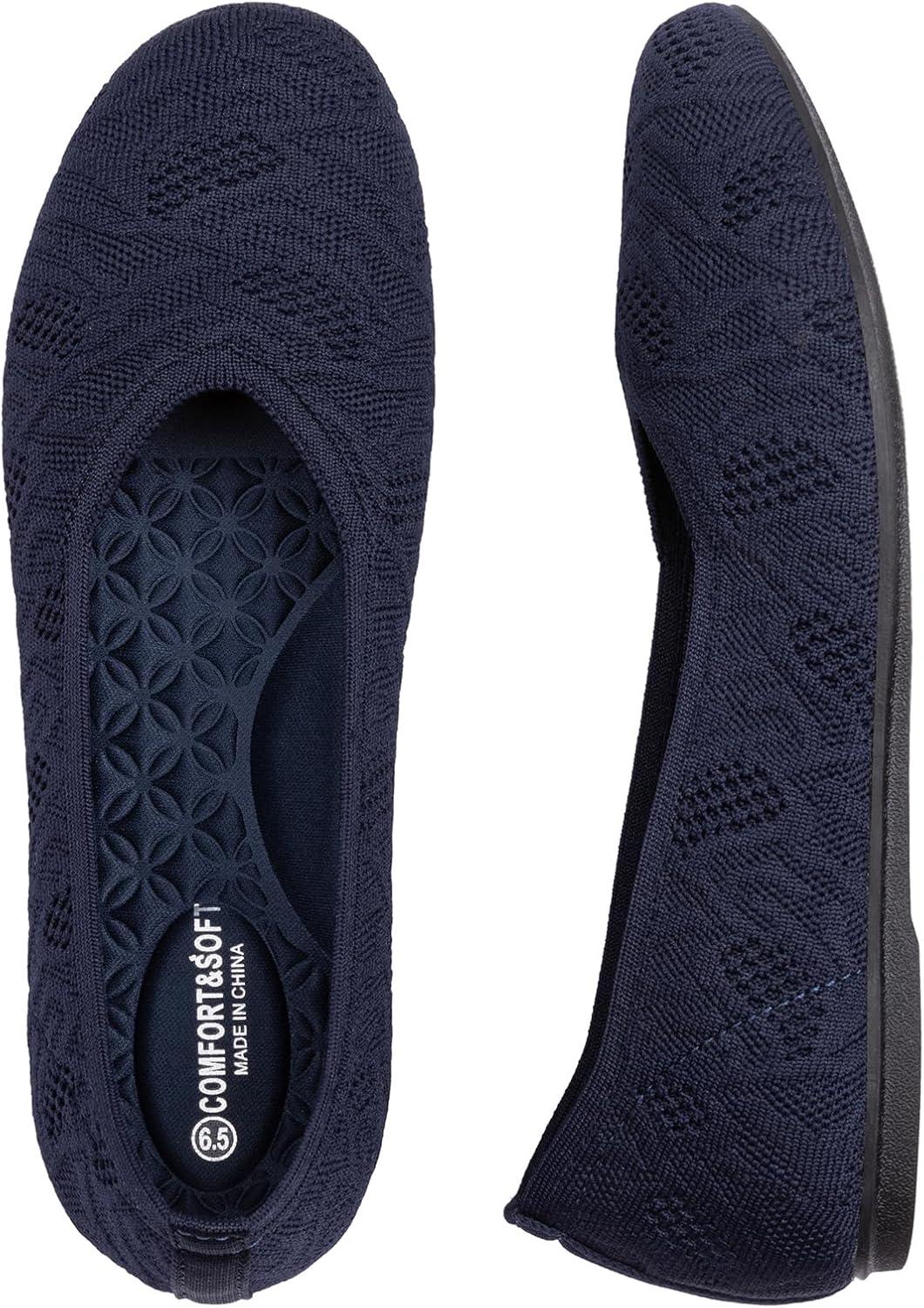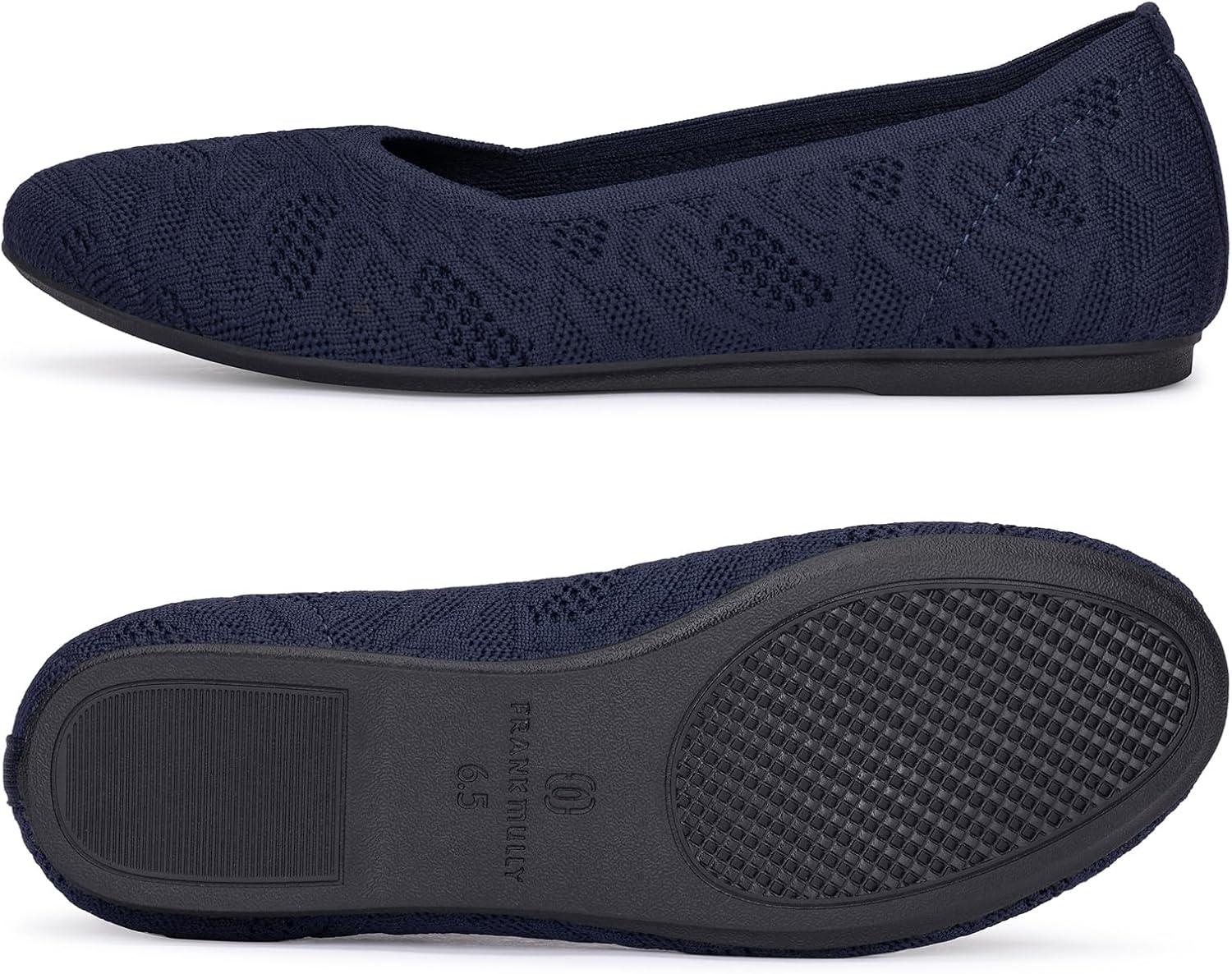 Frank Mully Women’s Ballet Flat Shoes Knit Dress Shoes Round Toe Slip On Ballerina Flats for Woman Low Wedge Comfort Soft(6112navy)