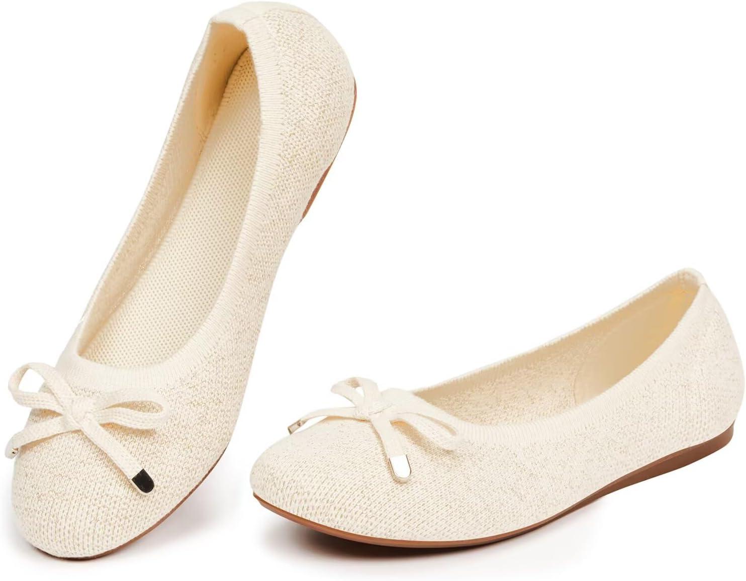 Frank Mully Women’s Ballet Flats Round Toe Walking Flats Slip On Work Shoes Knitted Flats Shoes for Woman Soft Lightweight(Gold)