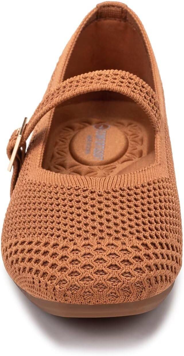 Frank Mully Womens Casual Flat Shoes Square Toe Shoes Knitted Mesh Flat Comfort Work Flat Shoes for Daily Washable(Orange)