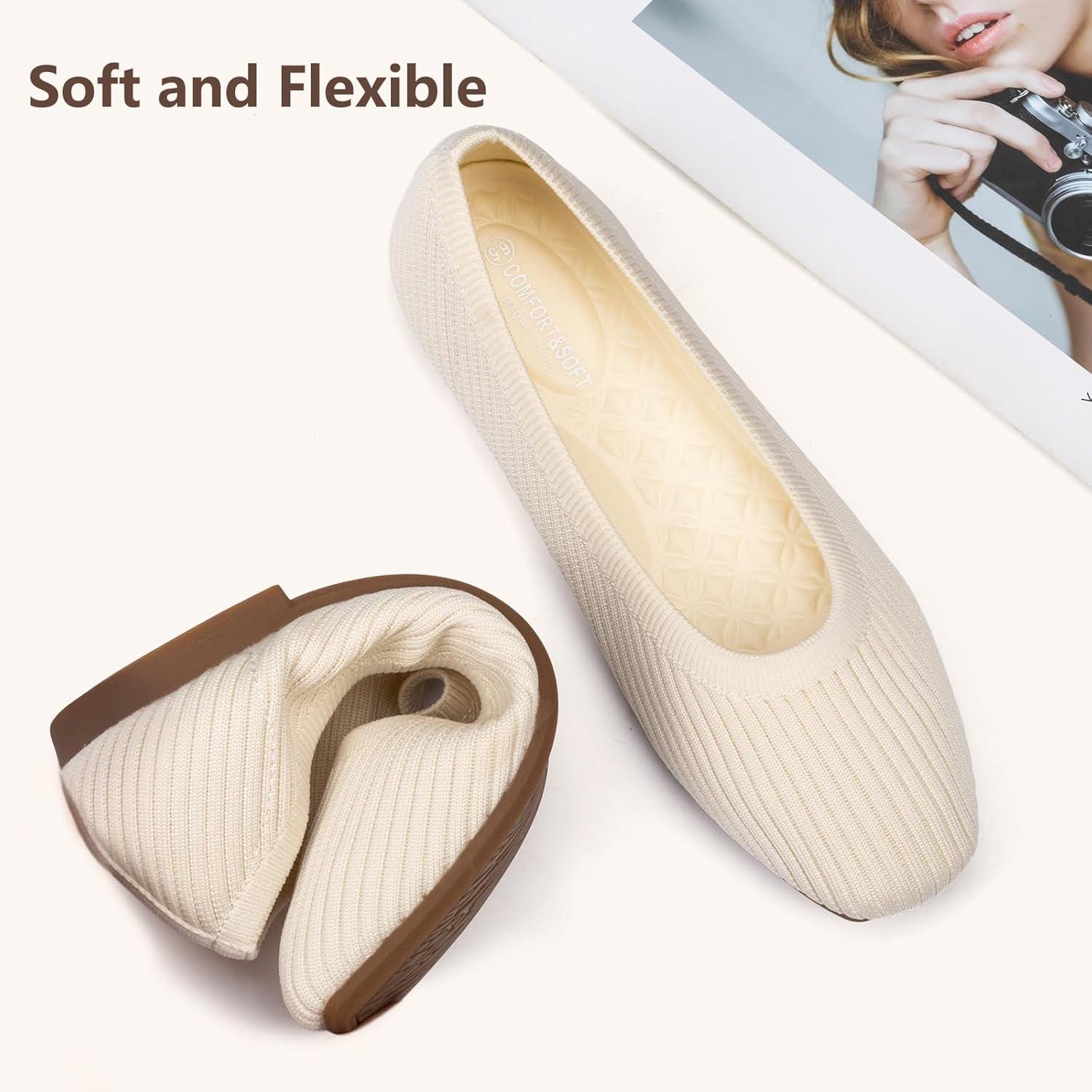 Frank Mully Women’s Flats Square Toe Flats Comfortable Slip on Washable Ballet Flats Shoes for Women Dressy Work(Beige)