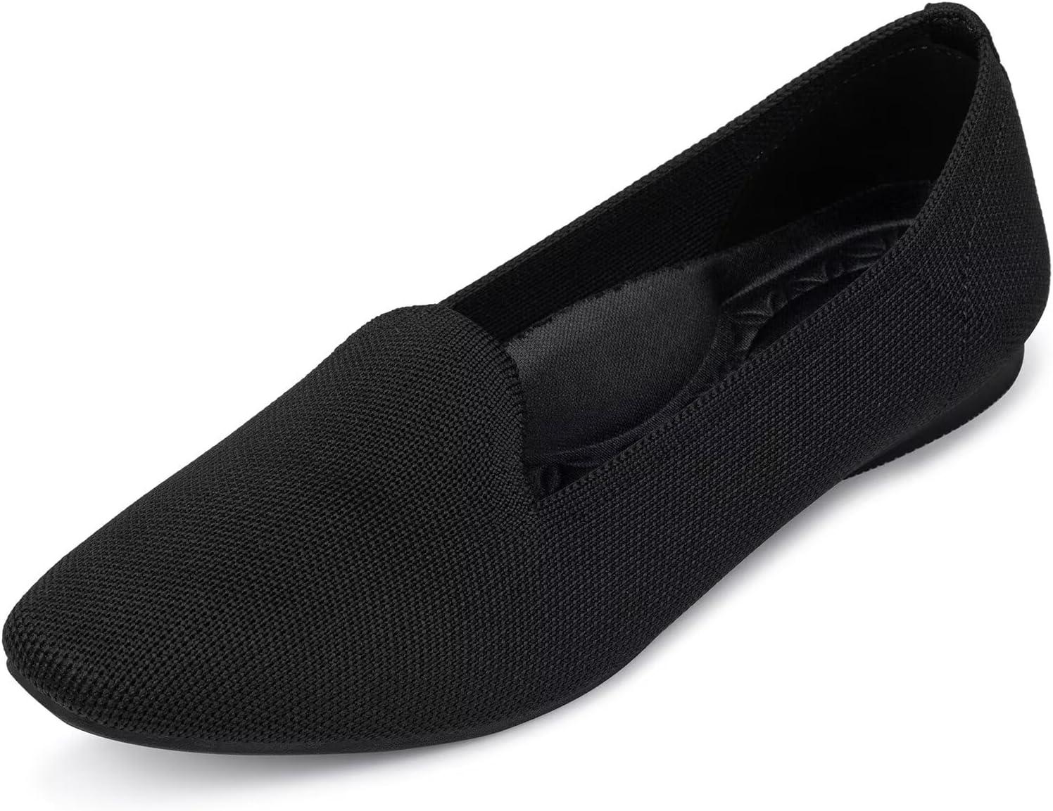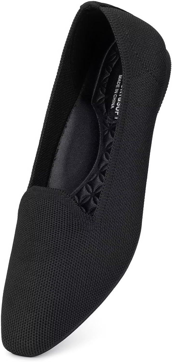 Frank Mully Women’s Knitted Square Toe Flats Comfortable Loafer Shoes Office Work Shoes Lightweight(Black)