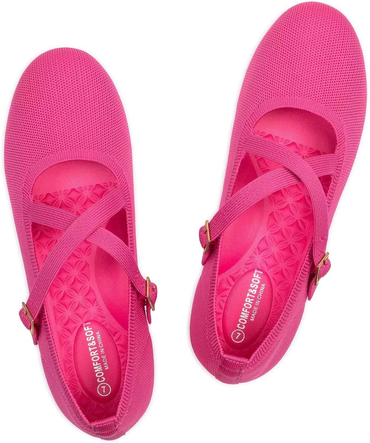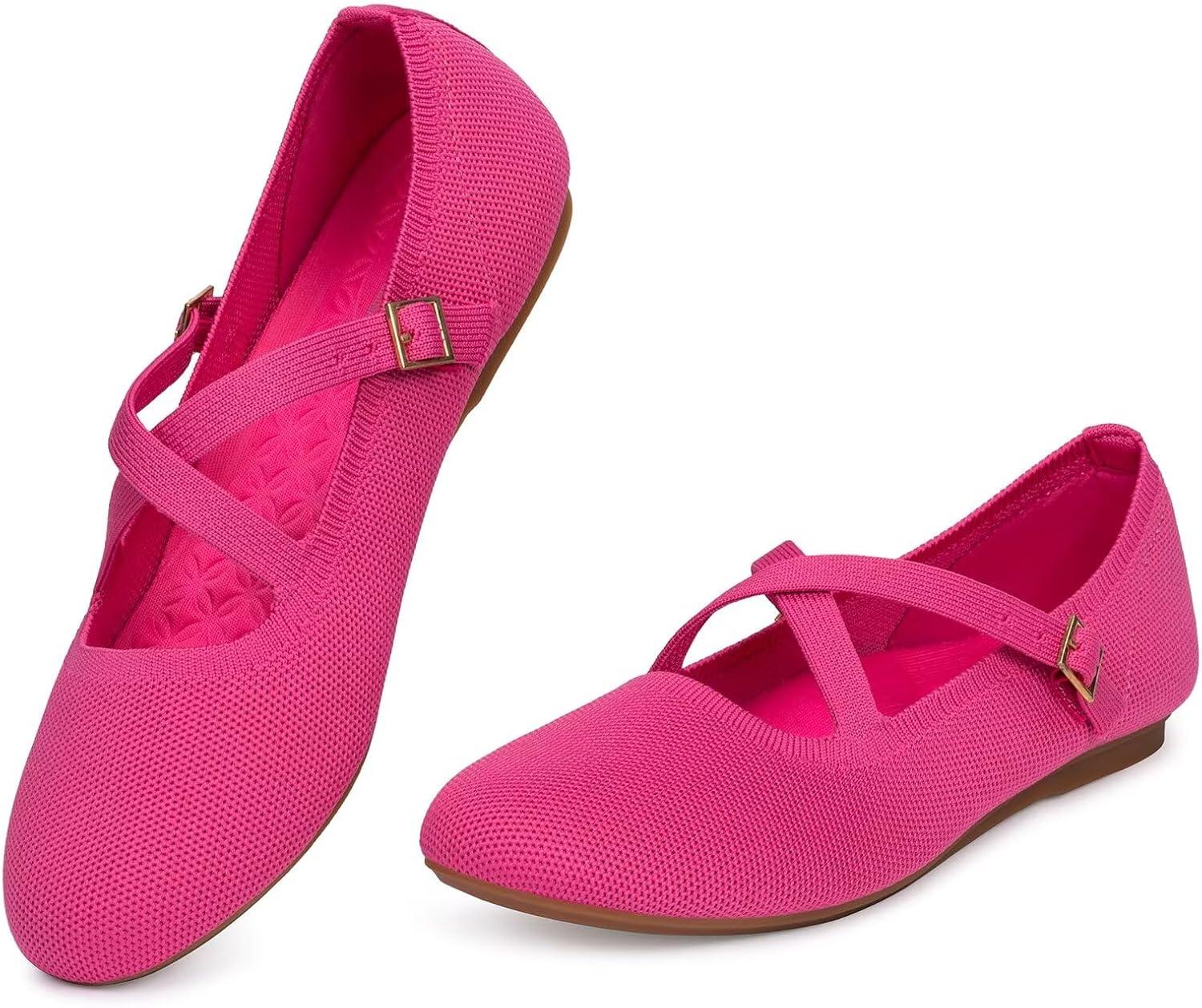Frank Mully Women’s Mary Jane Flats Knit Ballet Criss Cross Ankle Strap Flat Shoes(Pink/Solid)