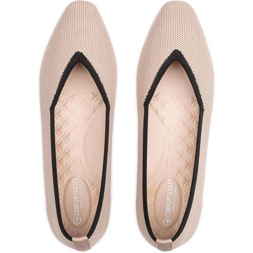 Frank Mully Women’s Square Toe Knitted Flats Breathable Lightweight Slip-On Shoes with Arch Support for All-Day Comfort(Khaki/Black)