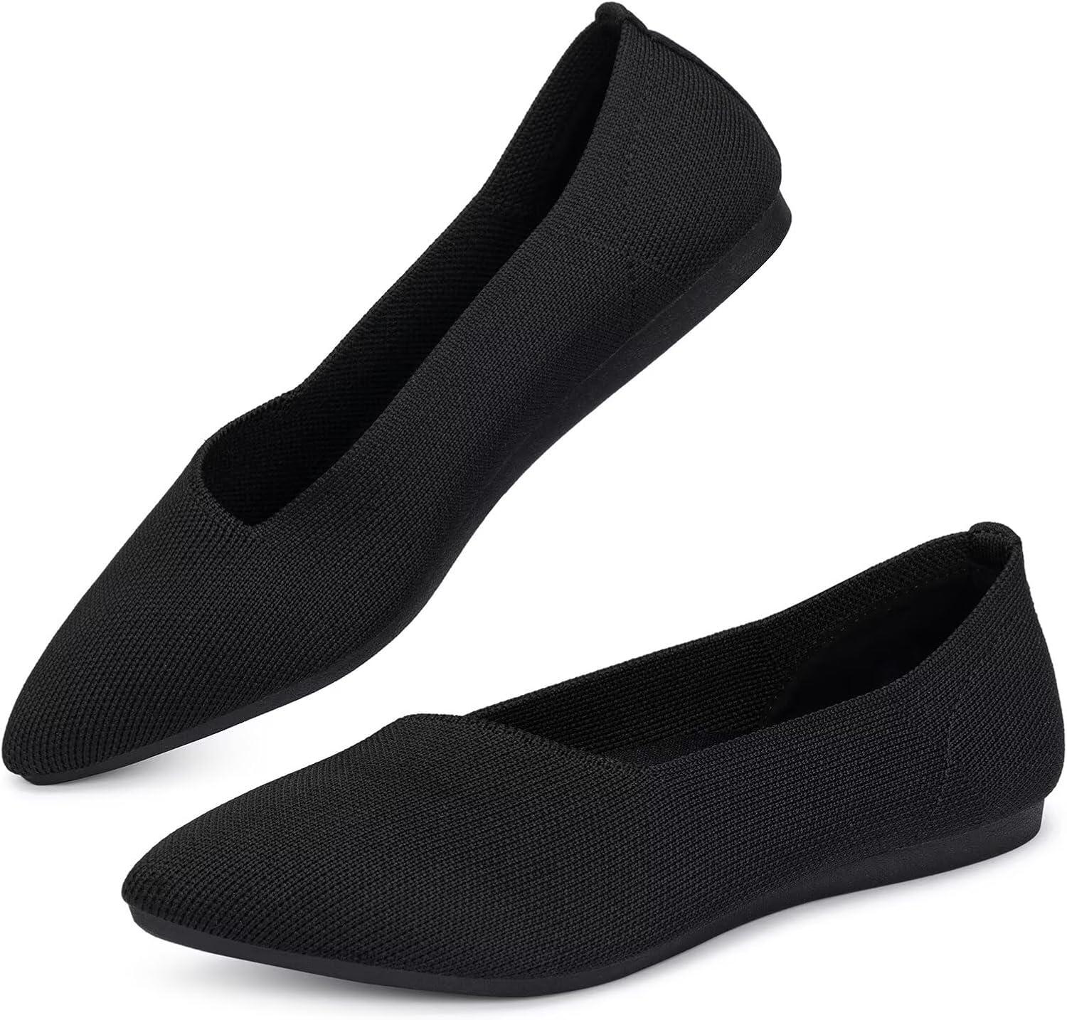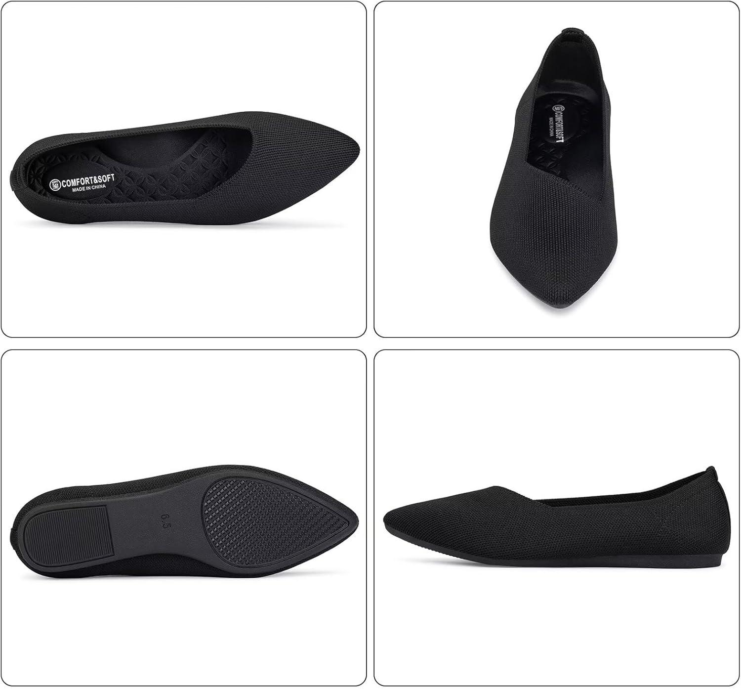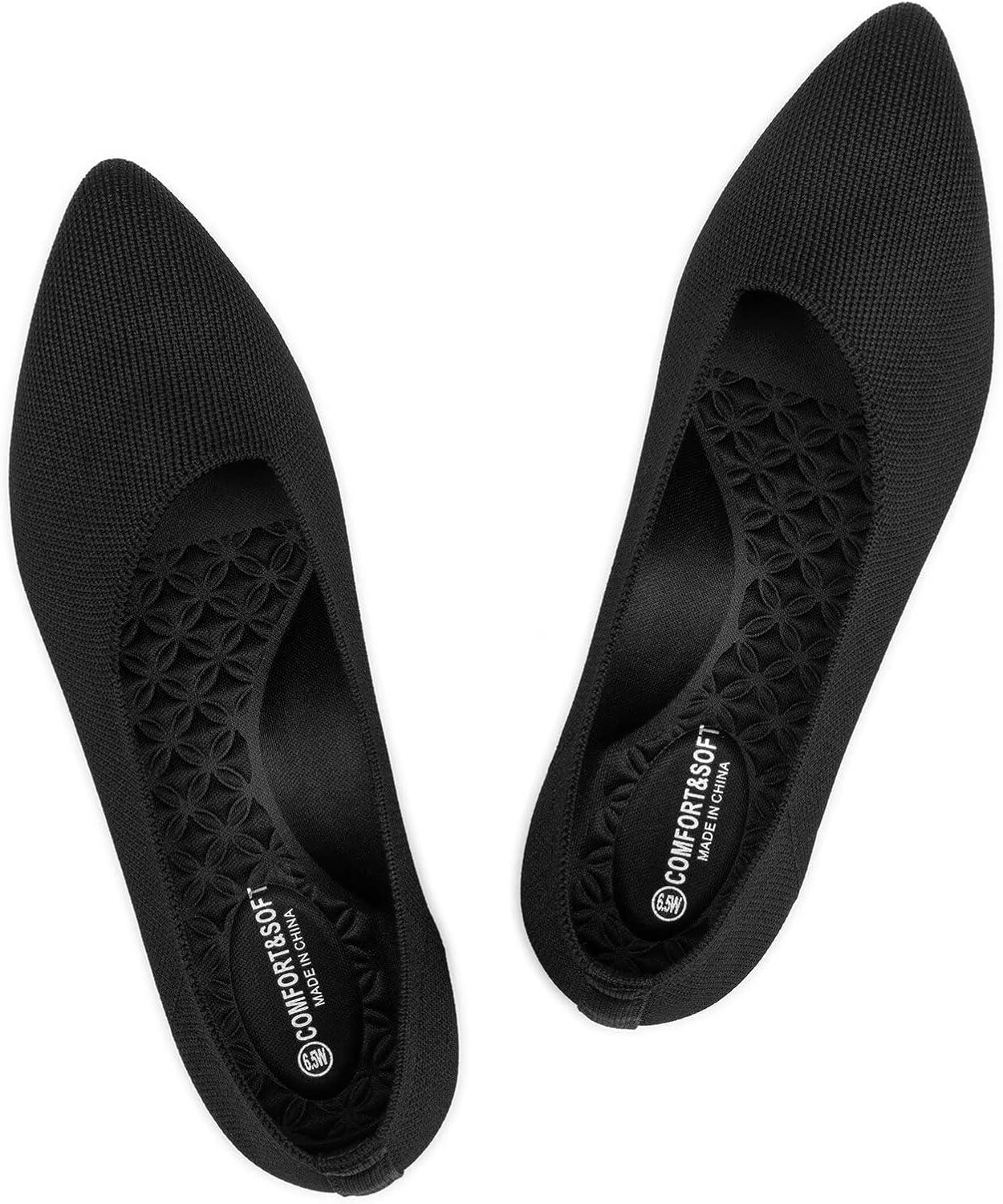 Frank Mully Women’s Wide Width Flat Shoes, Comfortable Pointed Toe Flats for Wide Feet(6011black)