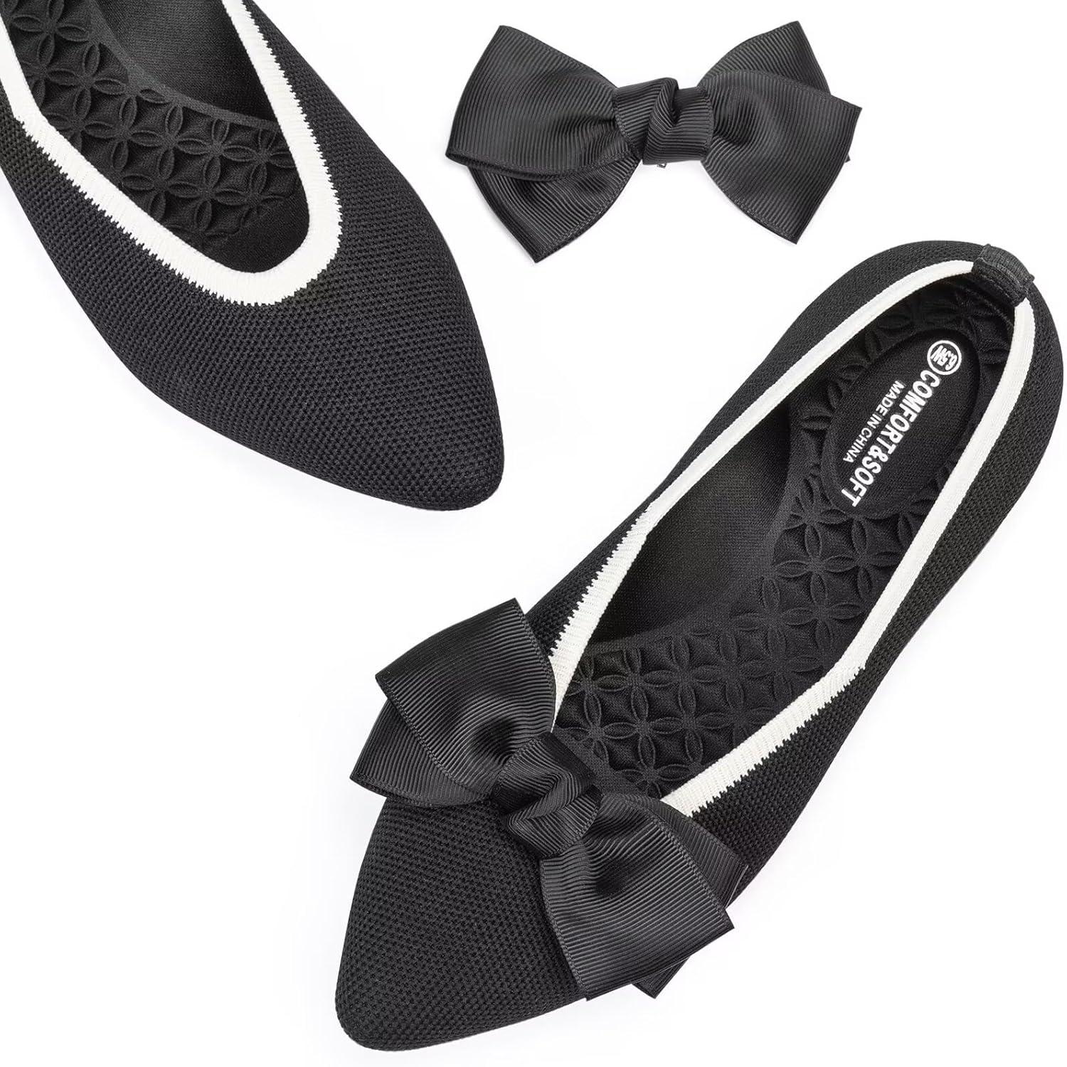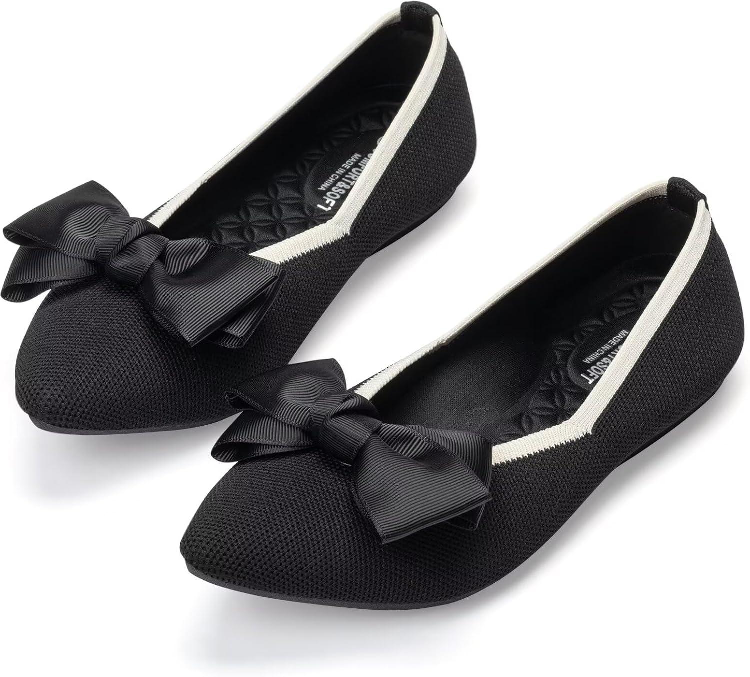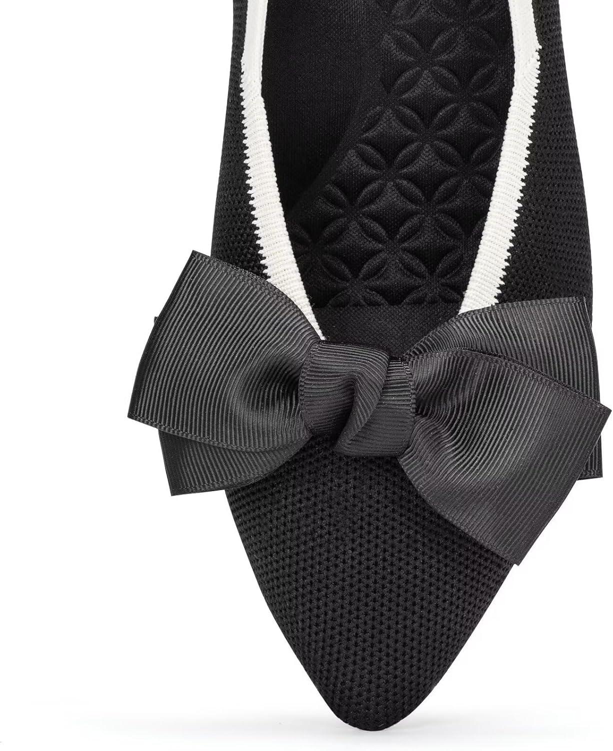 Frank Mully Women’s Wide Width Flat Shoes, Comfortable Pointed Toe Flats for Wide Feet(Black Bowknot)