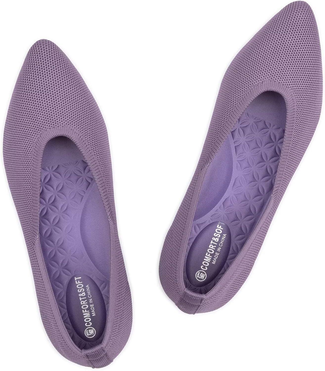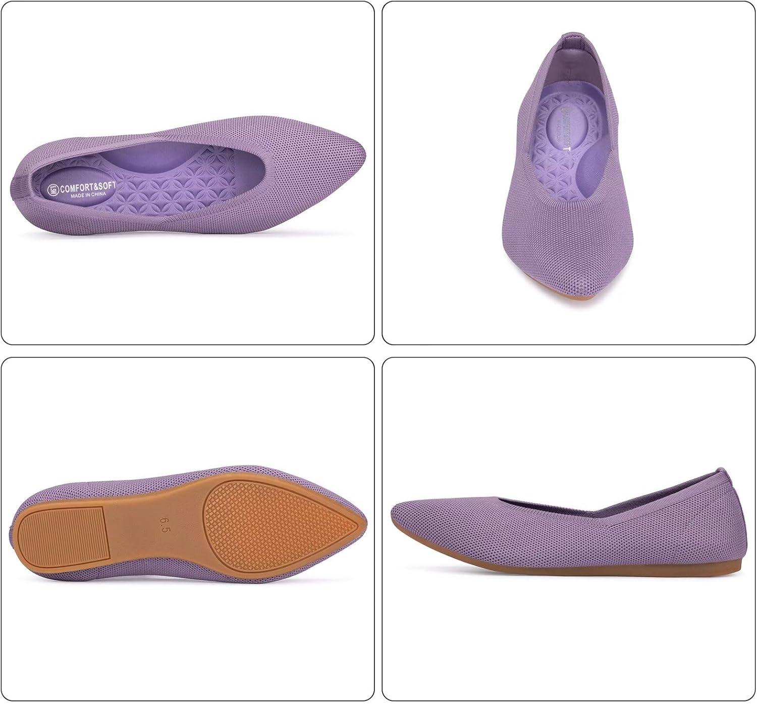 Frank Mully Women’s Wide Width Flat Shoes, Comfortable Pointed Toe Flats for Wide Feet(Purple)