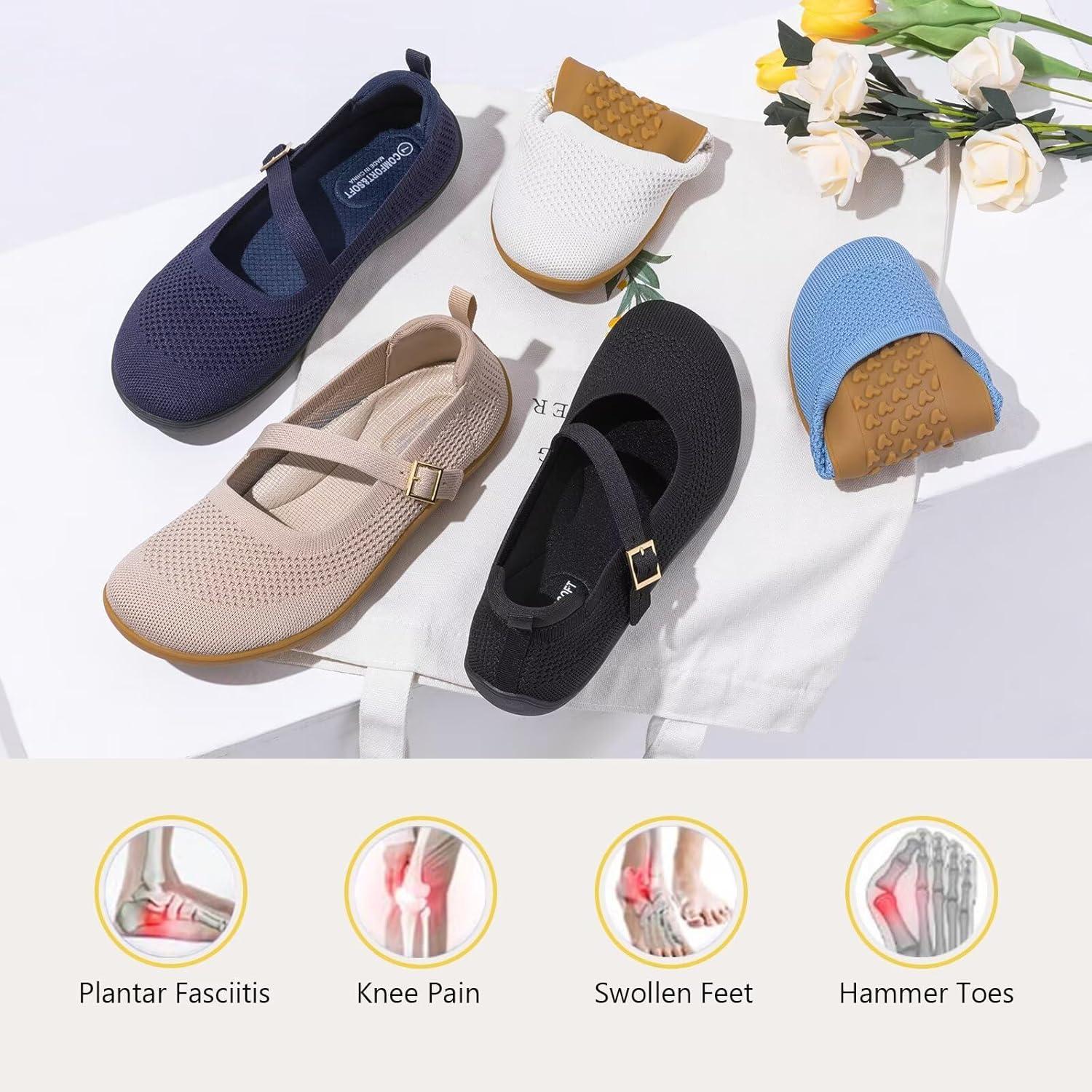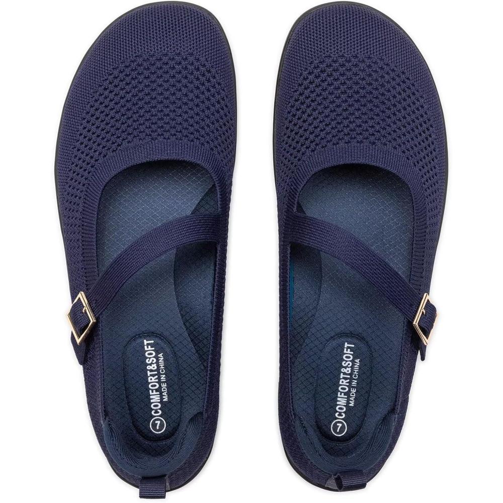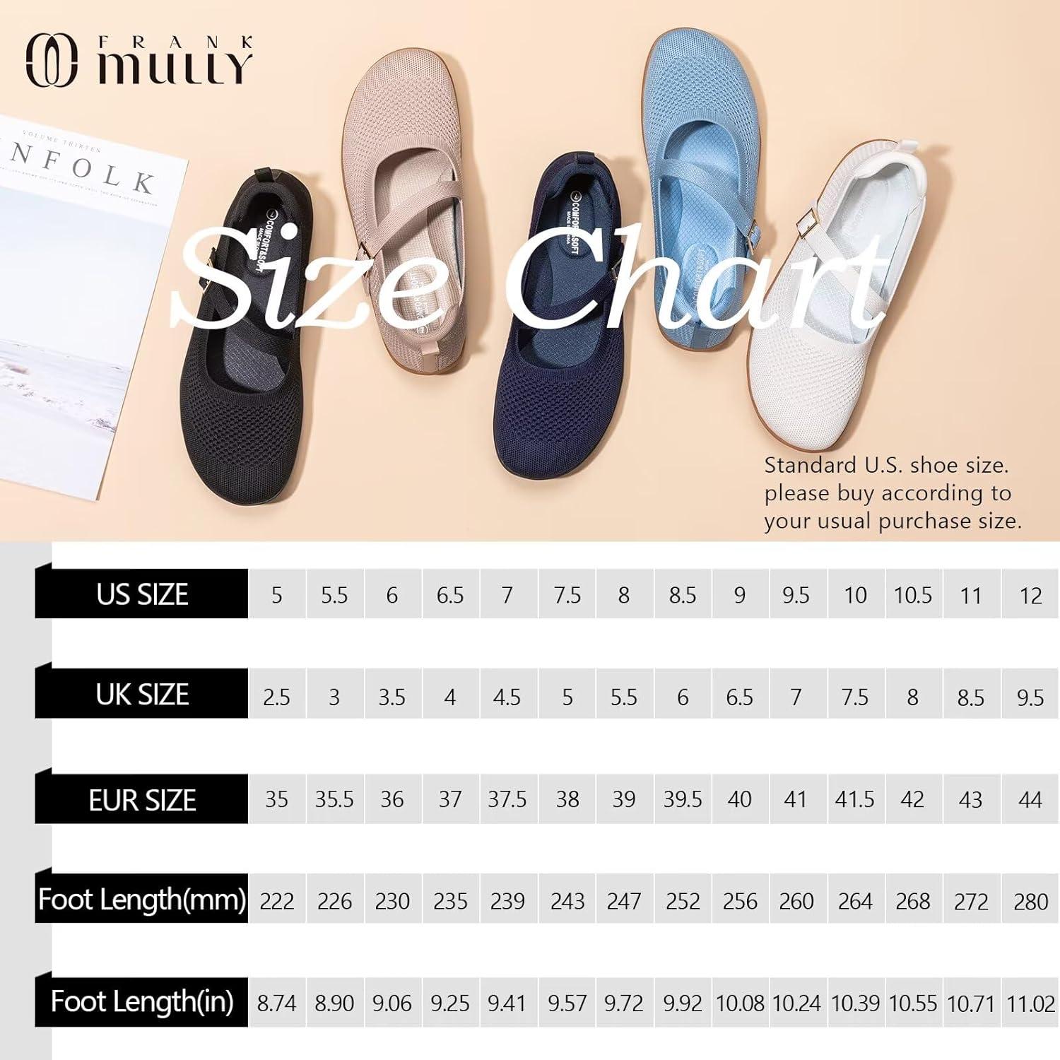 Frank Mully Women’s Wide Width Flats Mary Jane Flat Comofortable Knit Ballet Flat Wide Toe Box Dress Shoes with Adjustable Straps